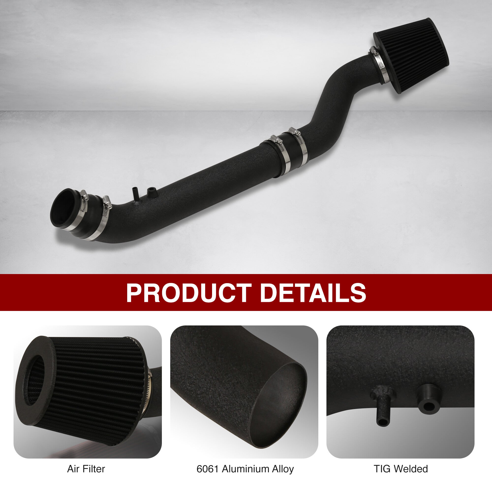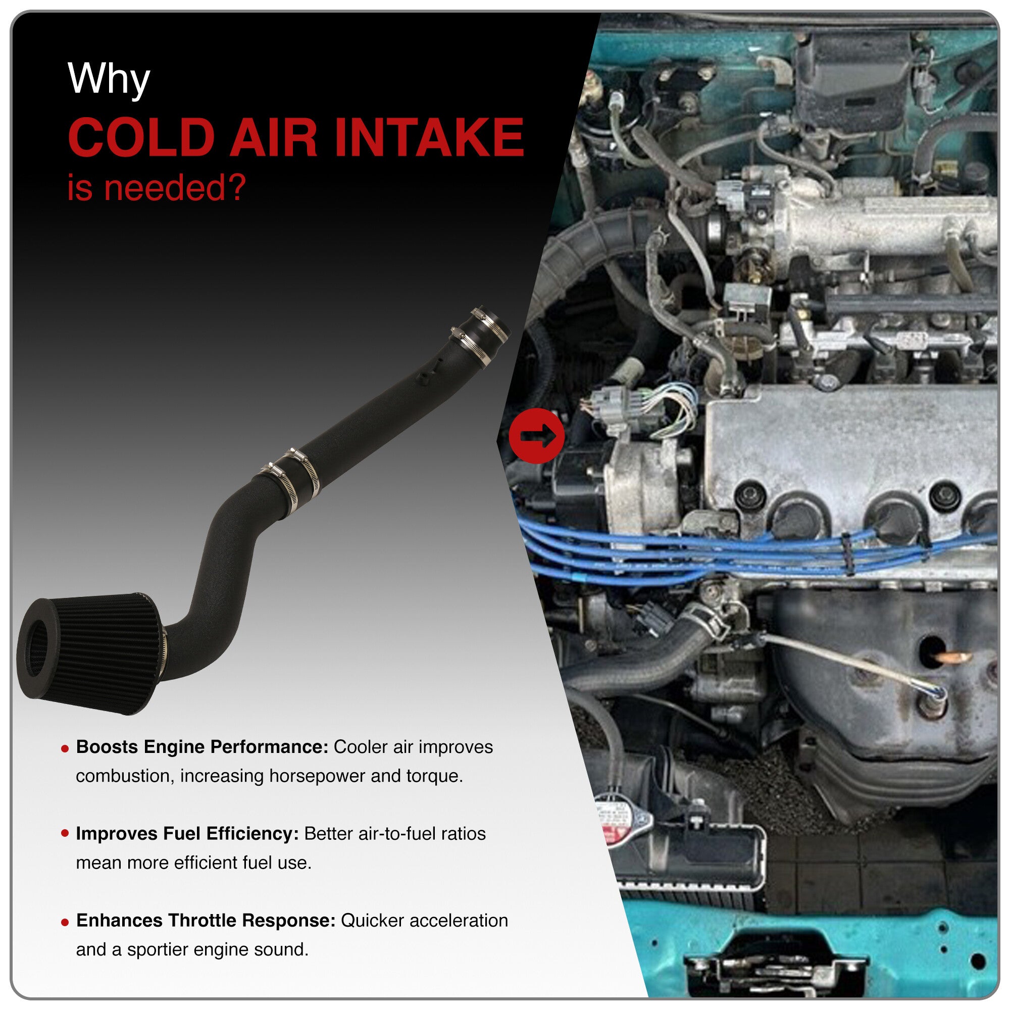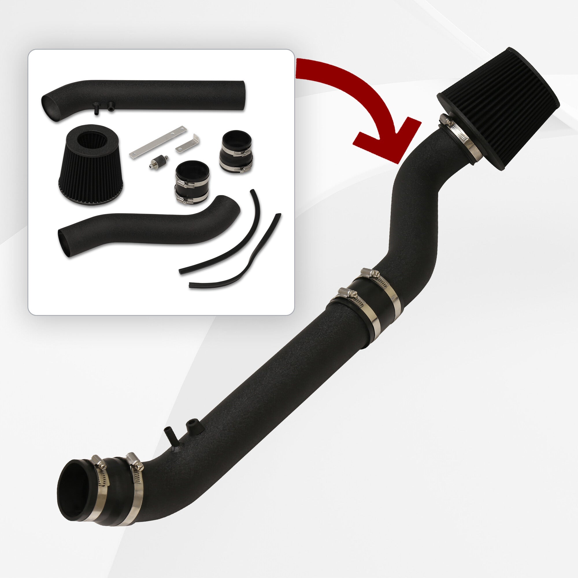 • Cold air intake system with air filter.