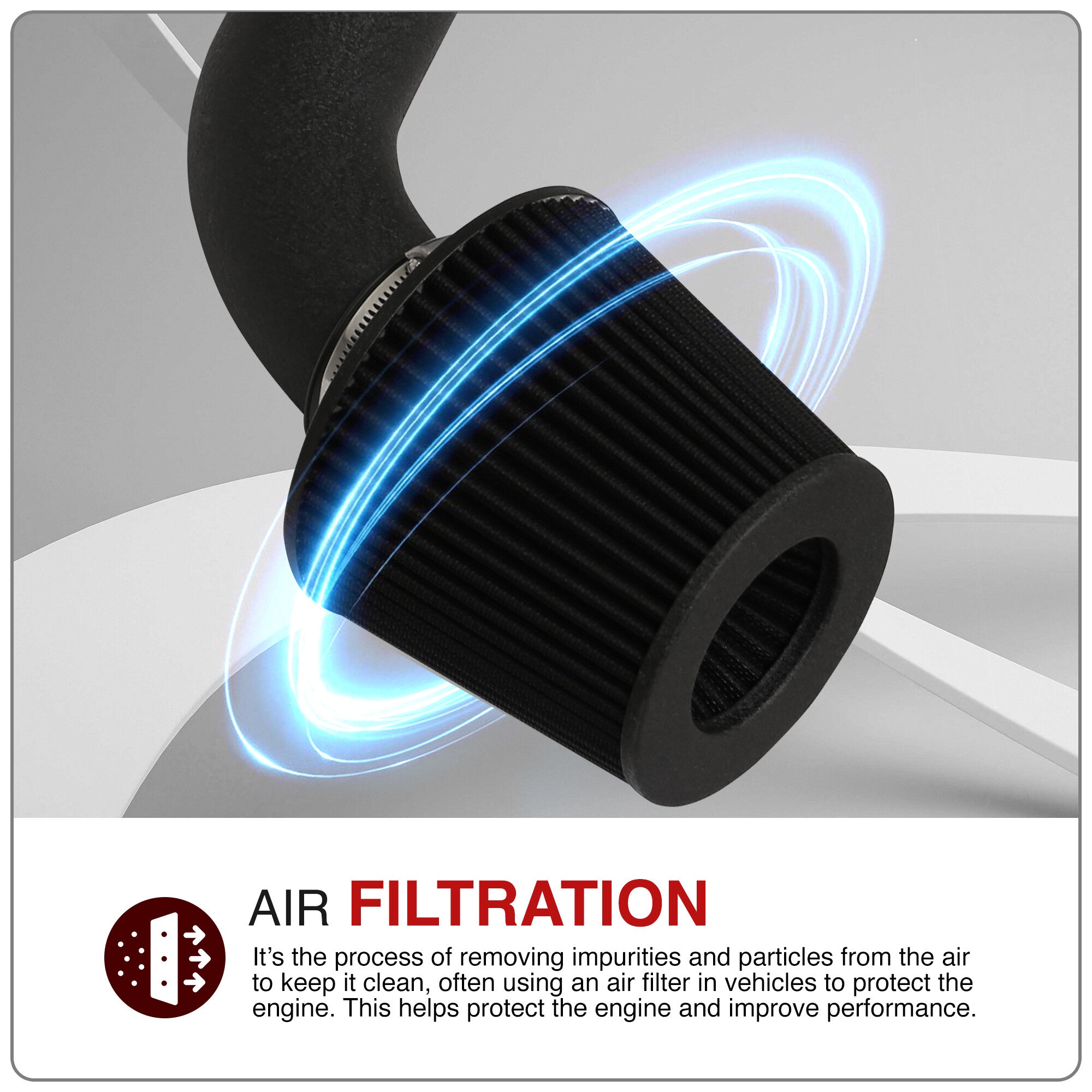 • Includes a high quality micro cotton washable and reusable cone air filter.