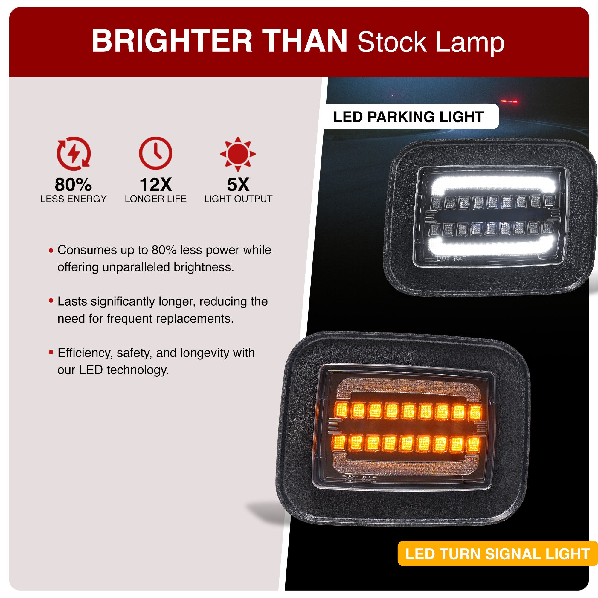 • Direct replacement factory style corner lights with sequential LED turn signals.