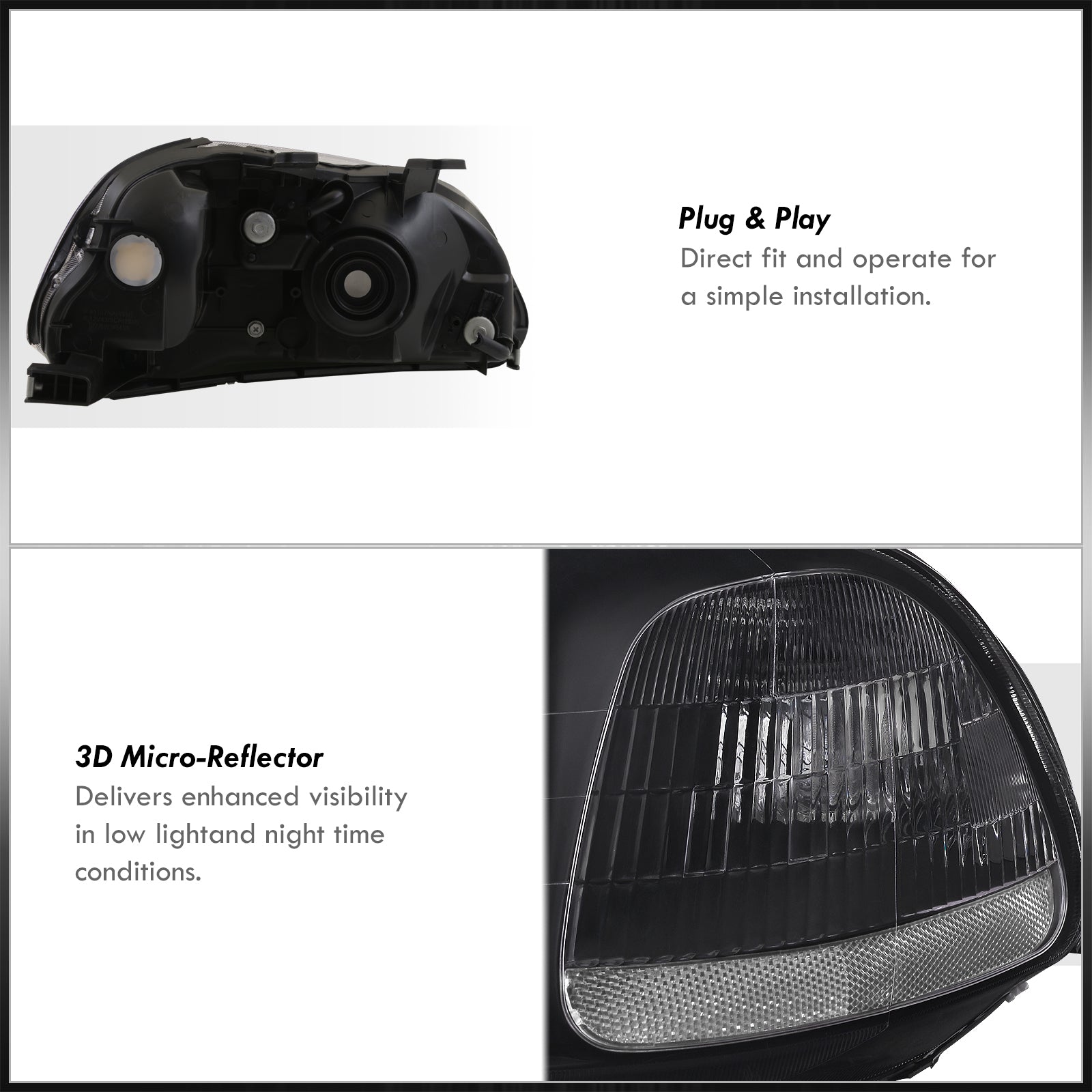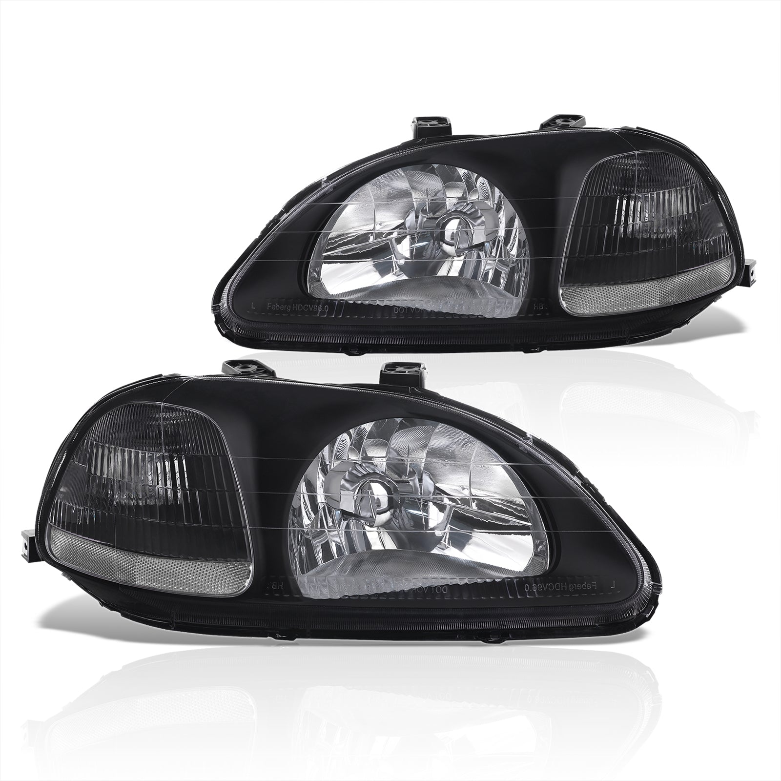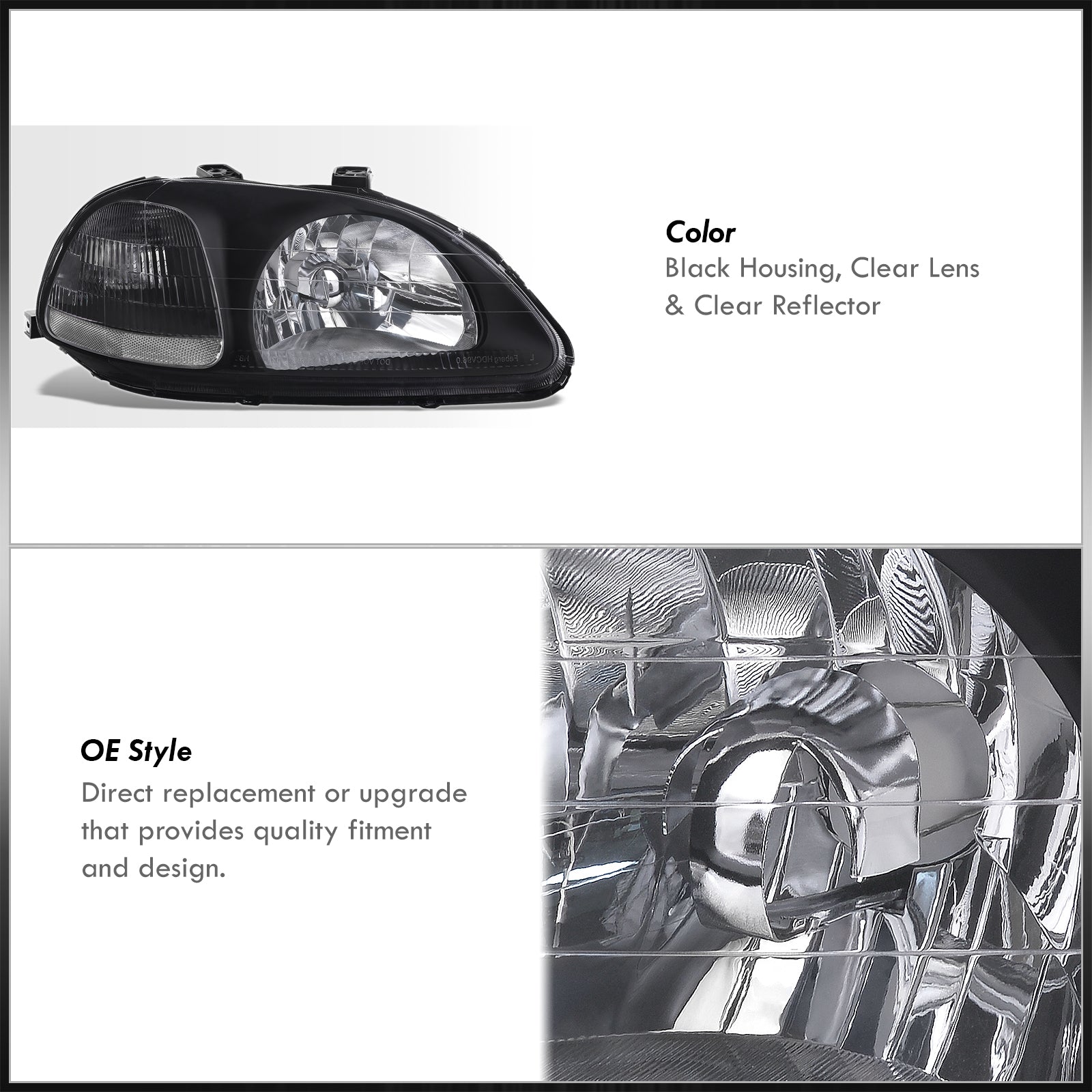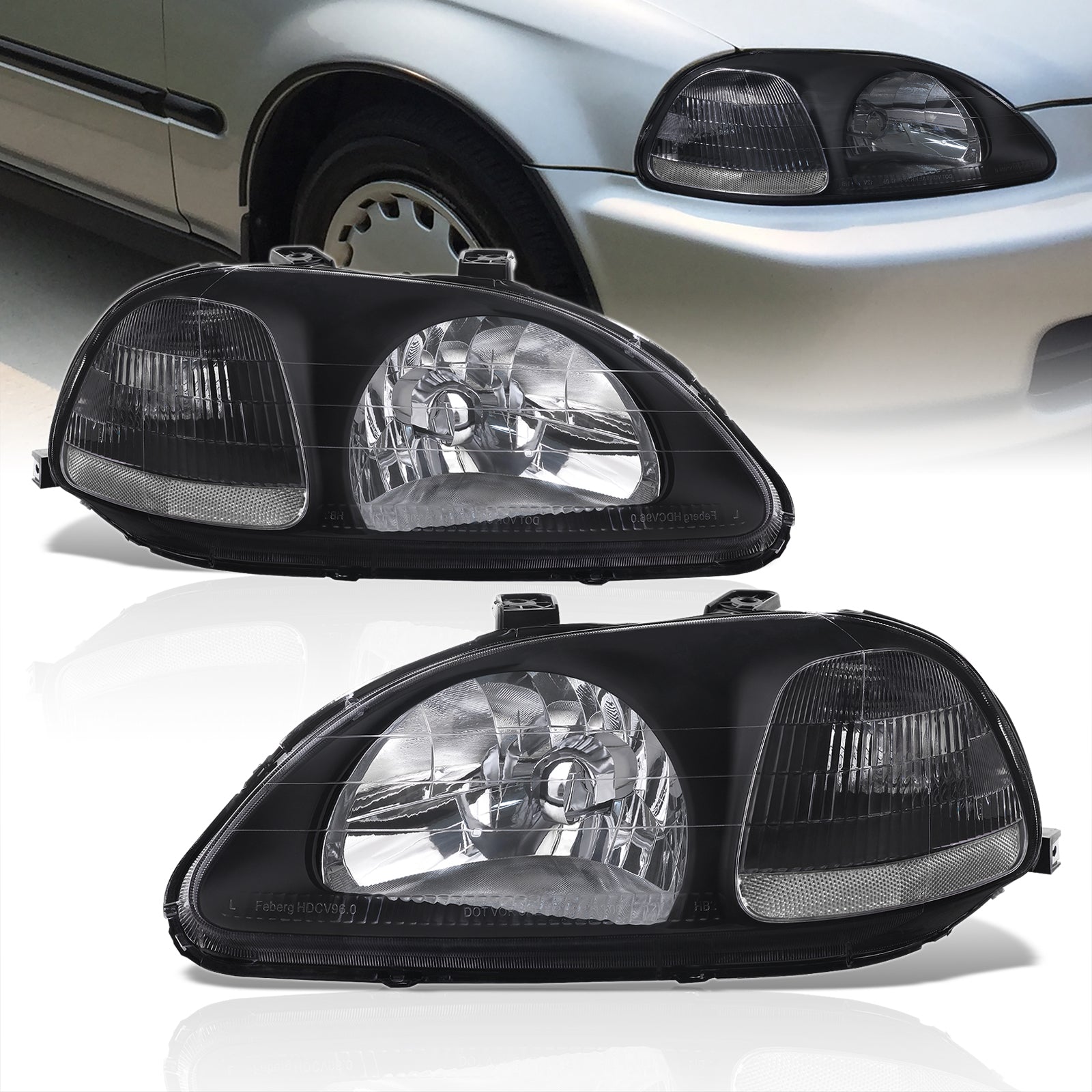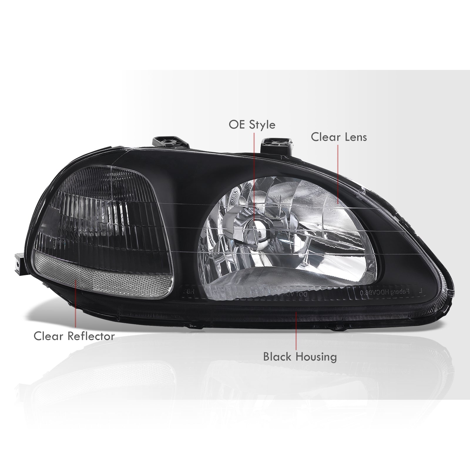Honda Civic 1996-1998 Factory Style Headlights Black Housing Clear Len Clear Reflector