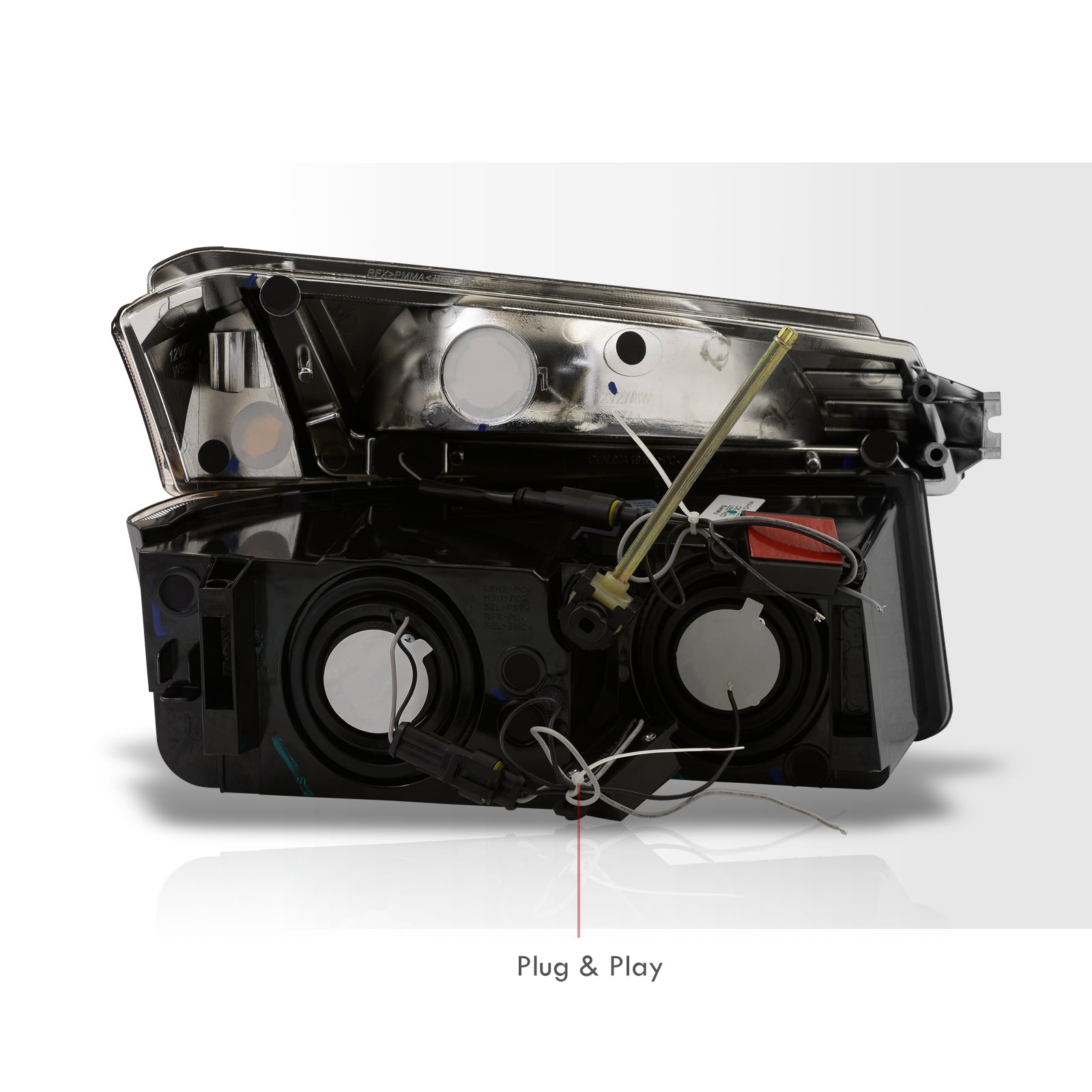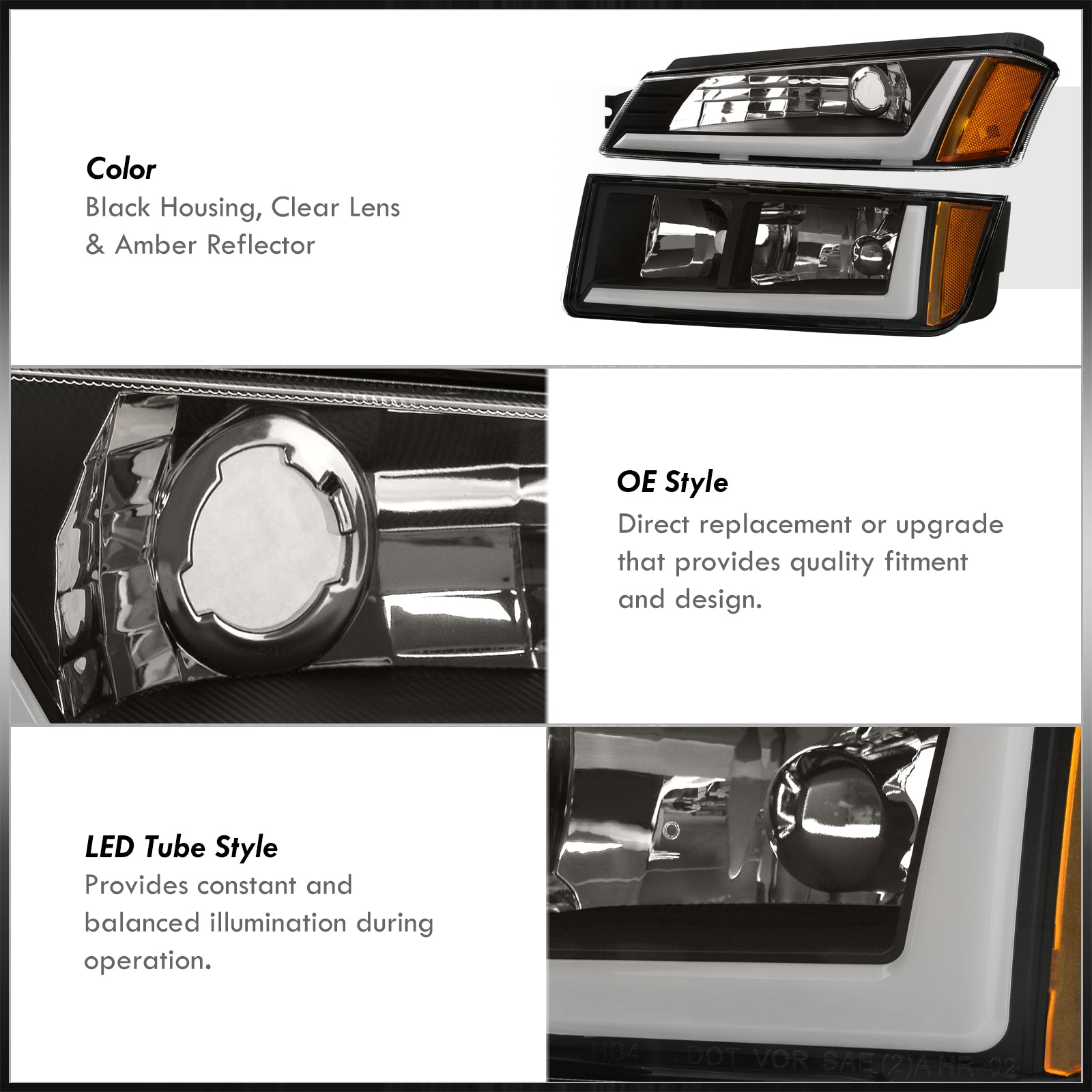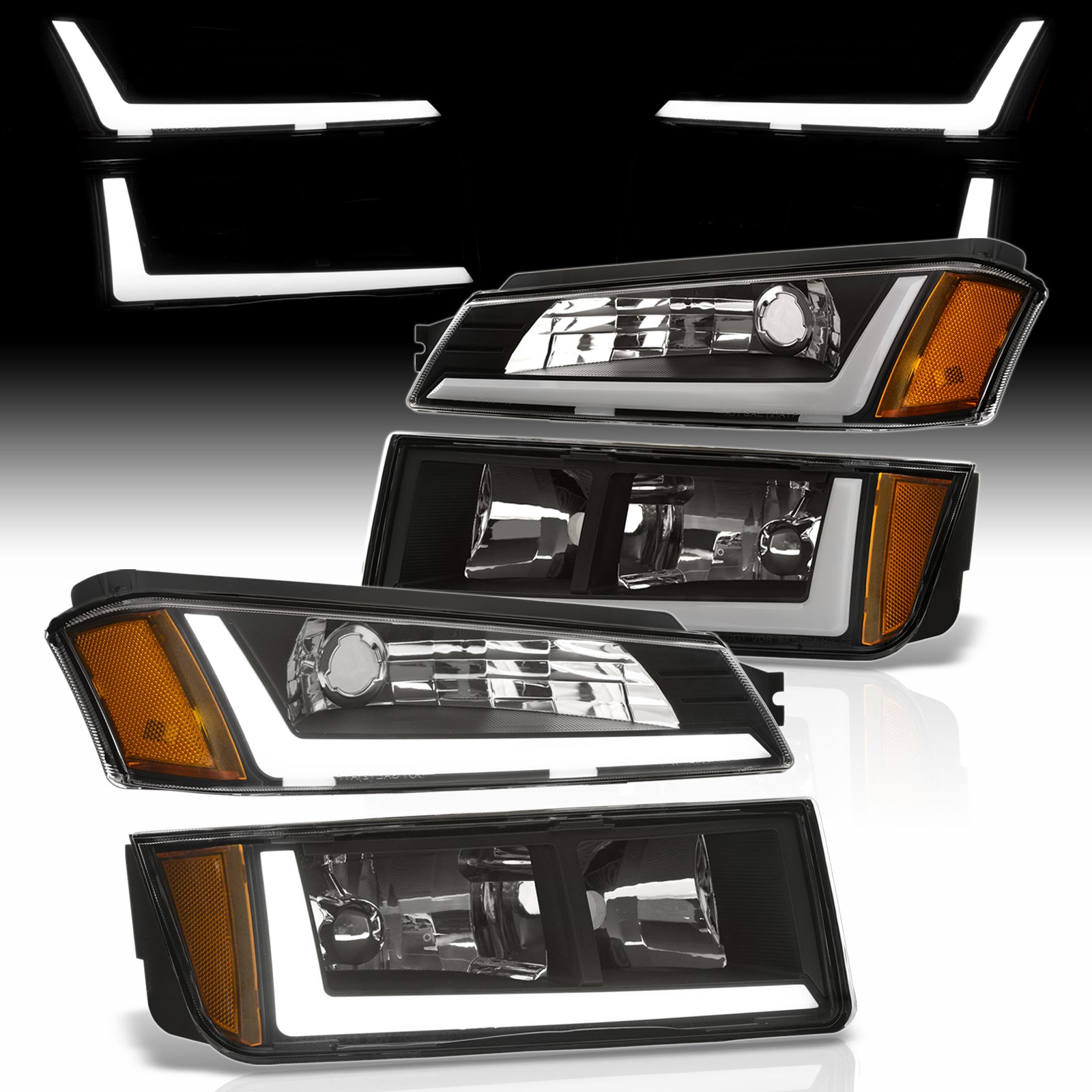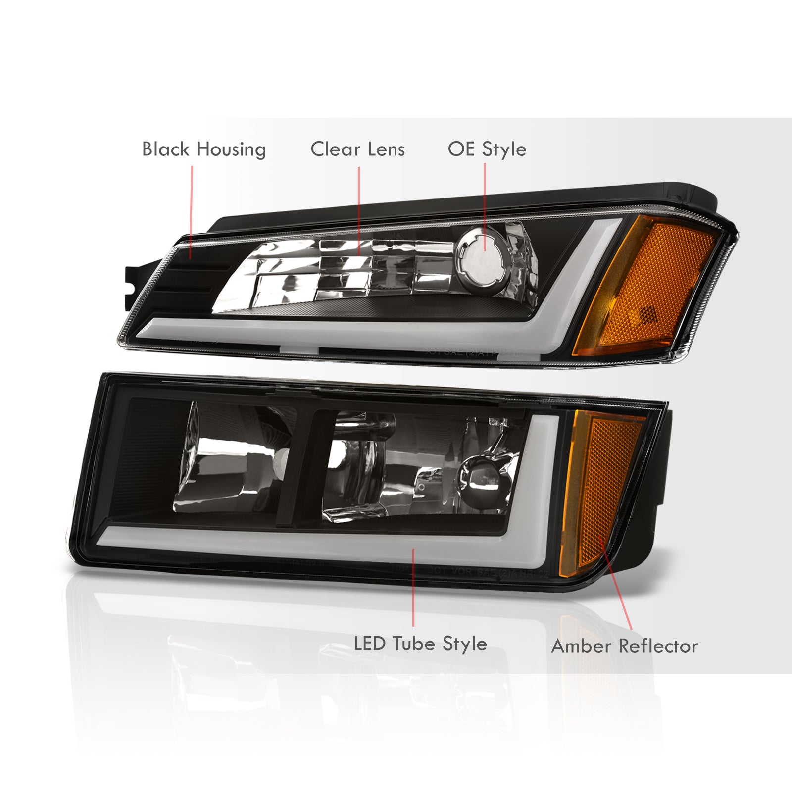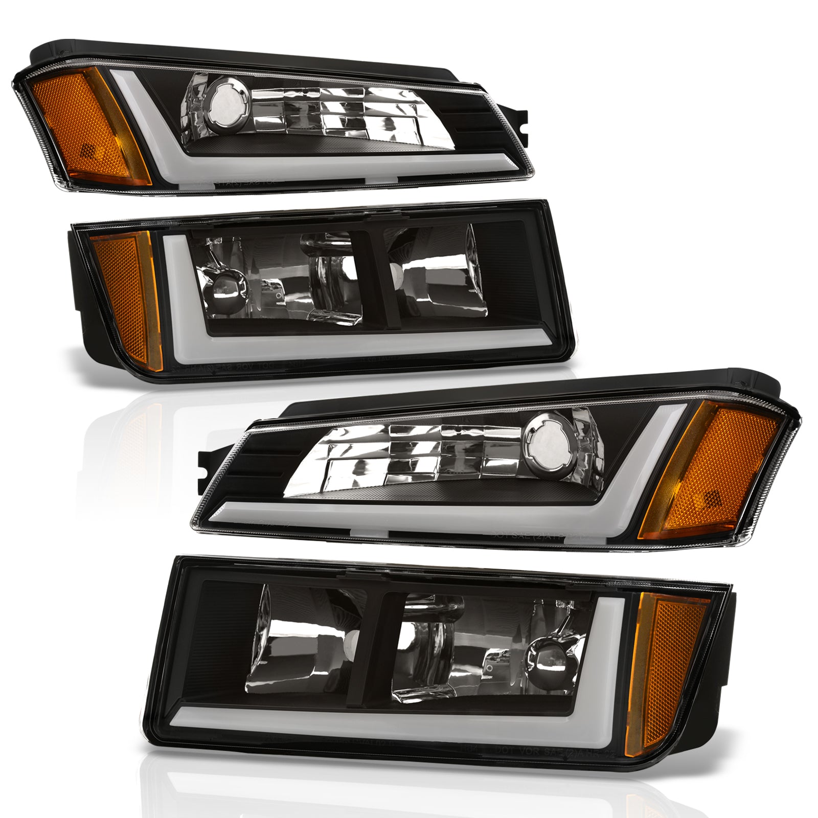Chevrolet Avalanche (Plastic Body Cladding Models Only) 2002-2006 LED DRL Bar Factory Style Headlights + Bumpers Black Housing Clear Len Amber Reflector