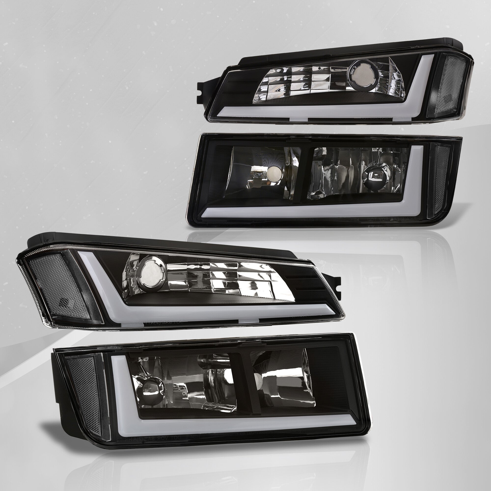 Chevrolet Avalanche (Plastic Body Cladding Models Only) 2002-2006 LED DRL Bar Factory Style Headlights + Bumpers Black Housing Clear Len Clear Reflector