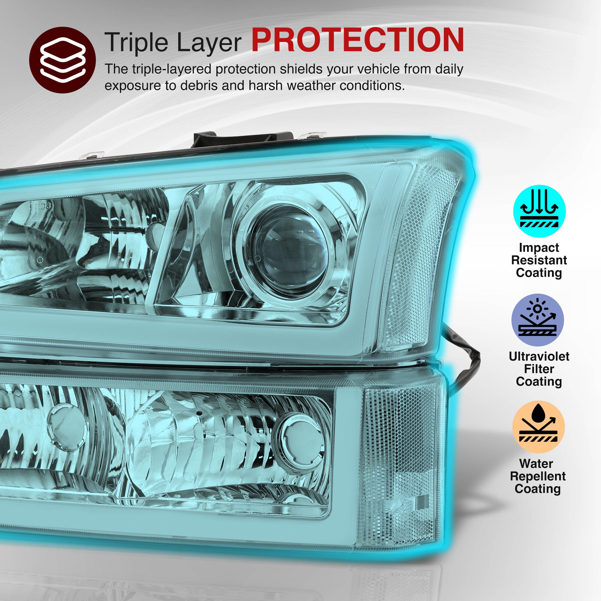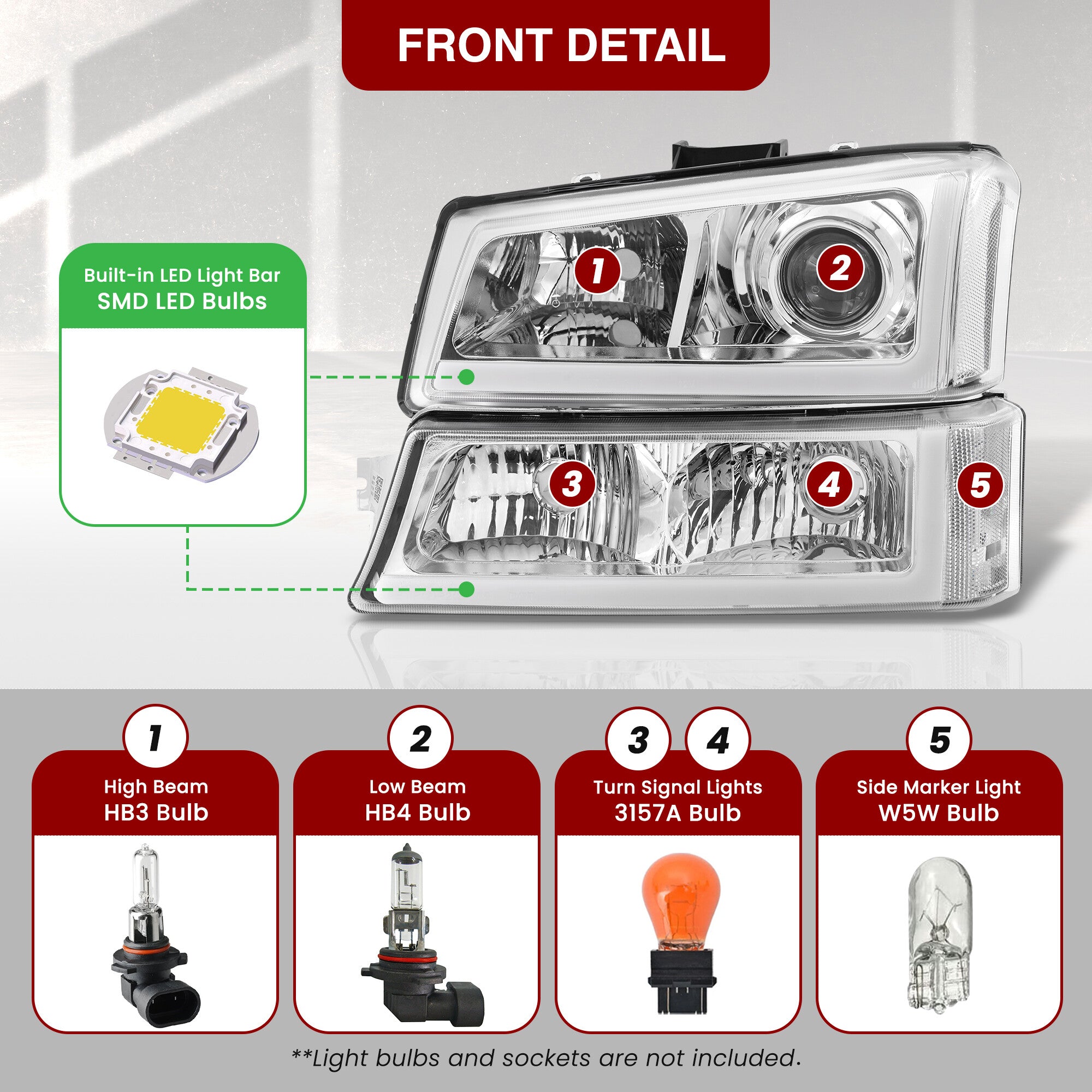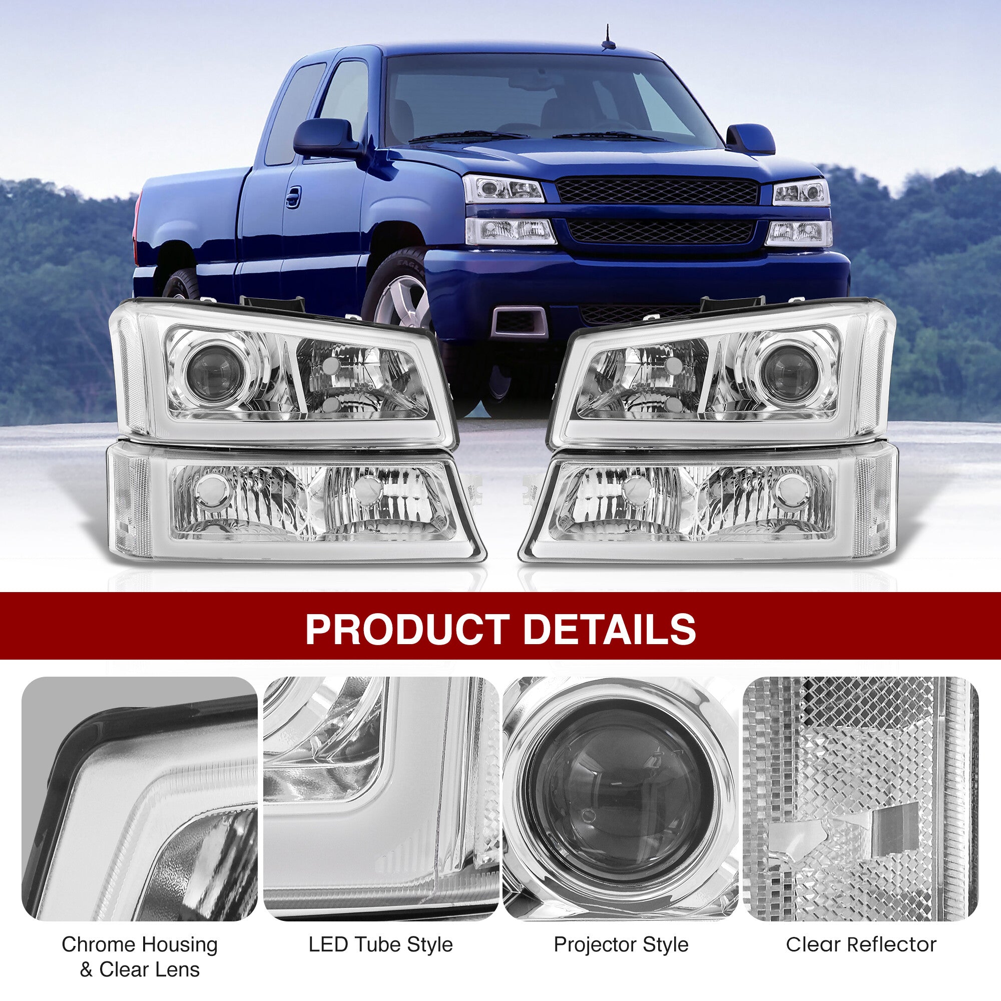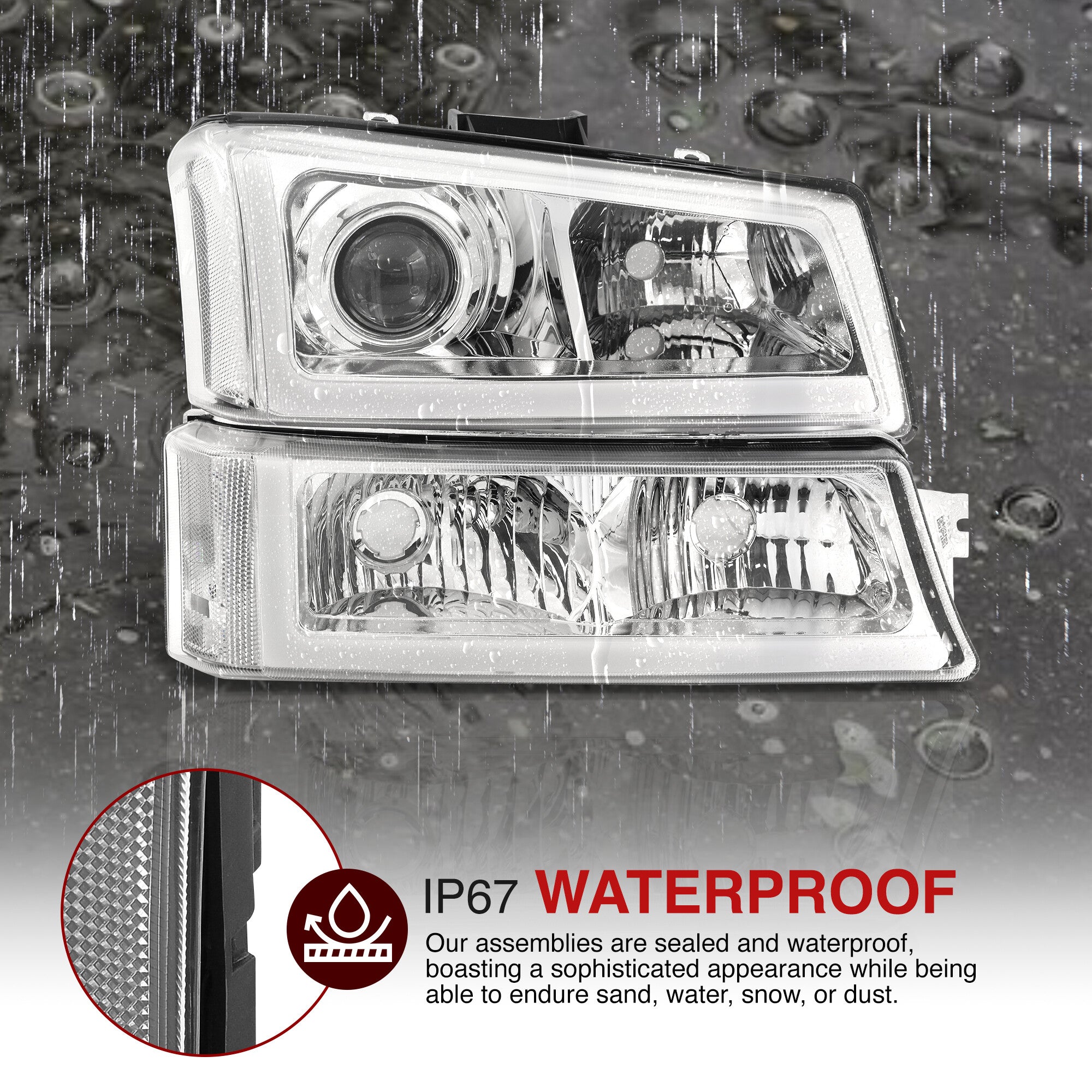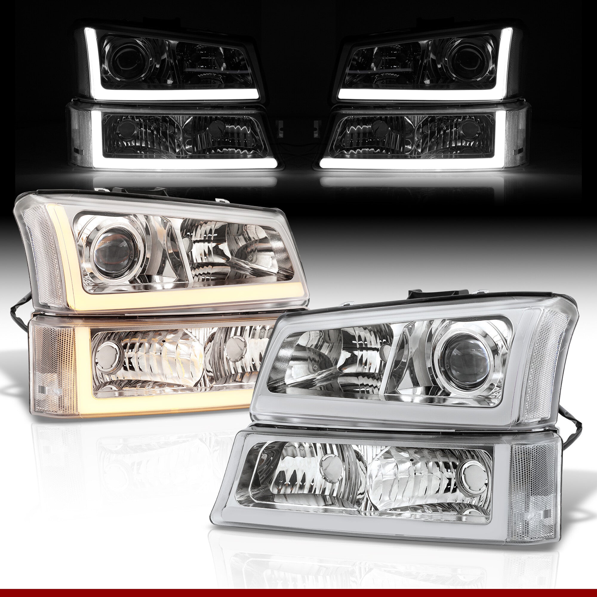 - Direct replacement projector headlights with sequential LED DRL signals + bumper lights.