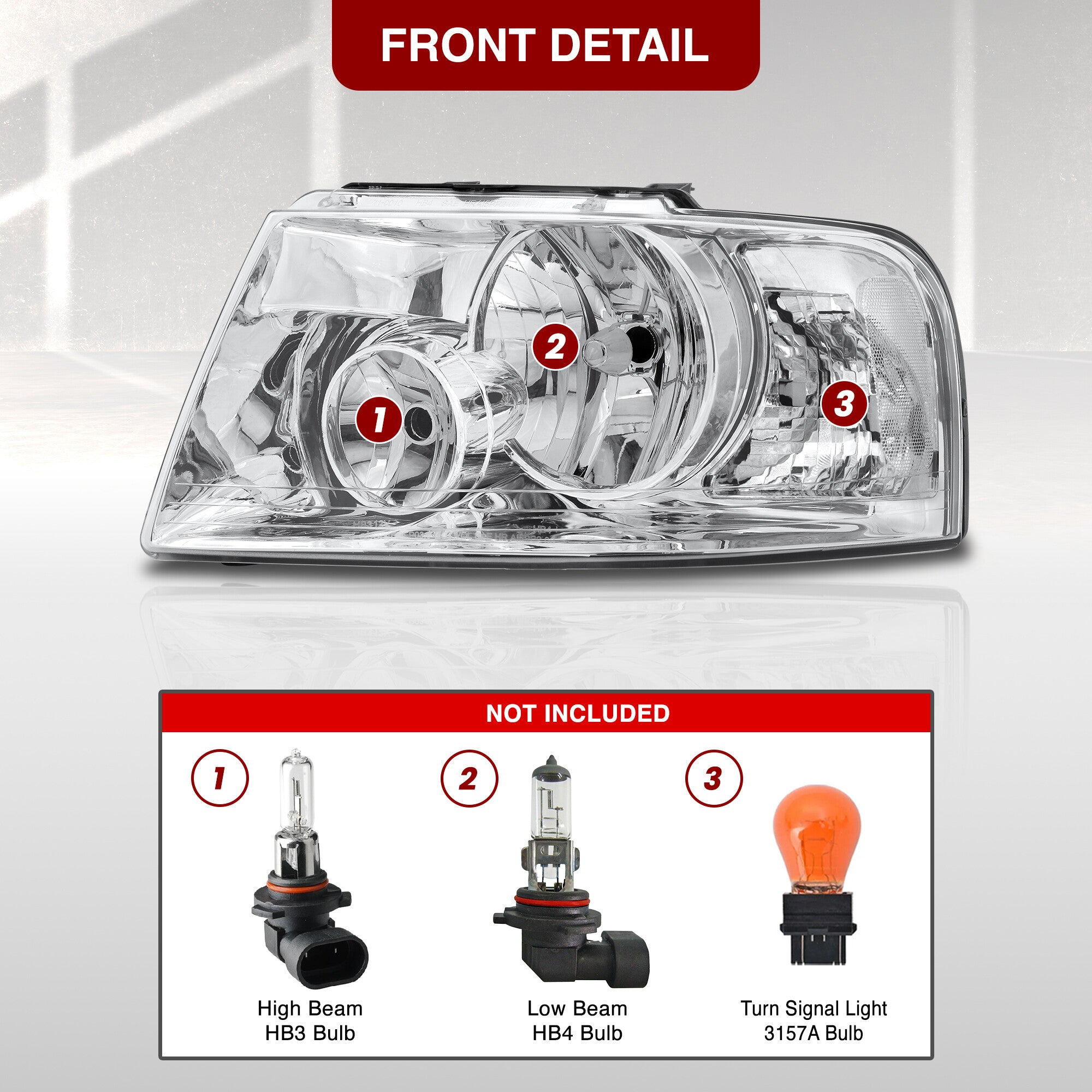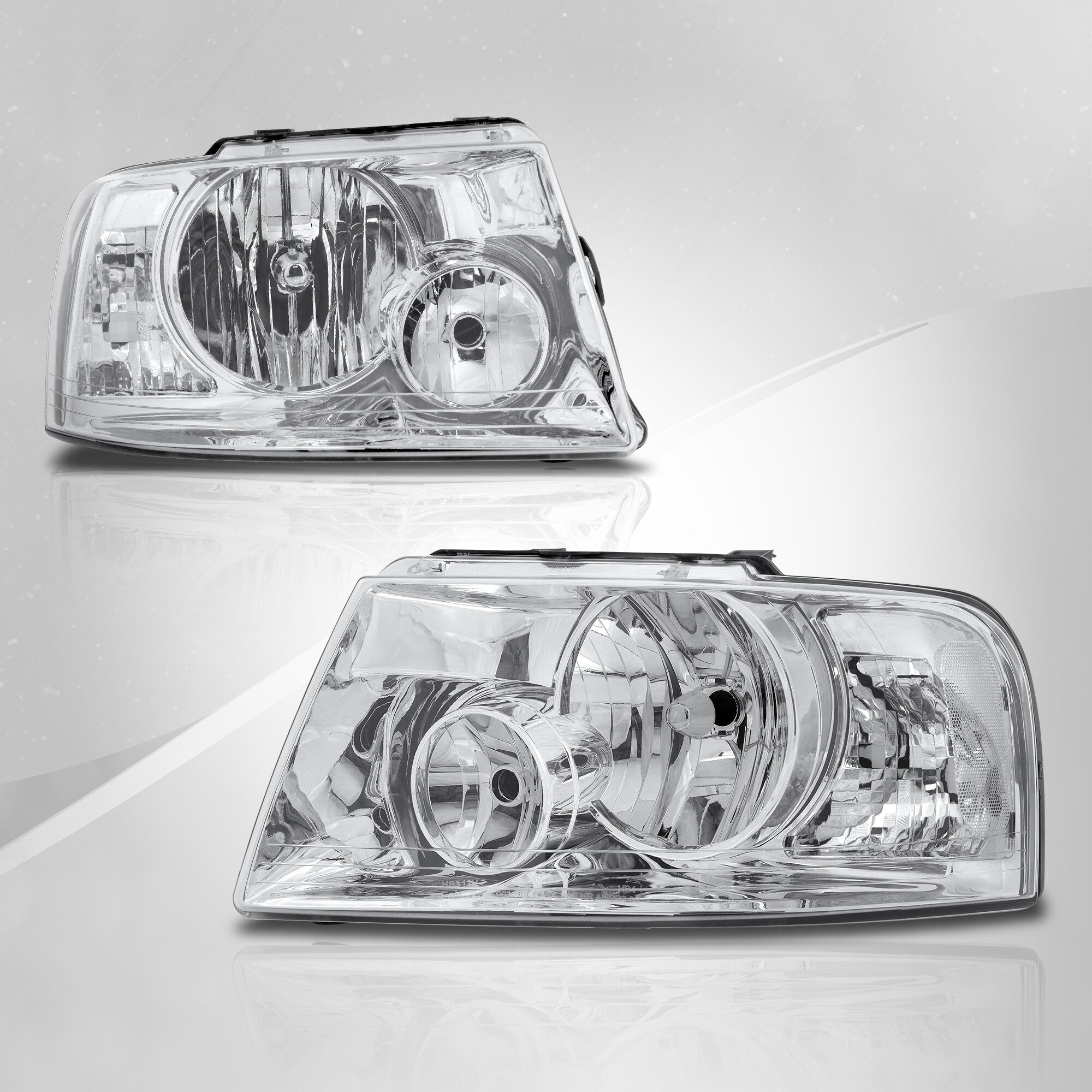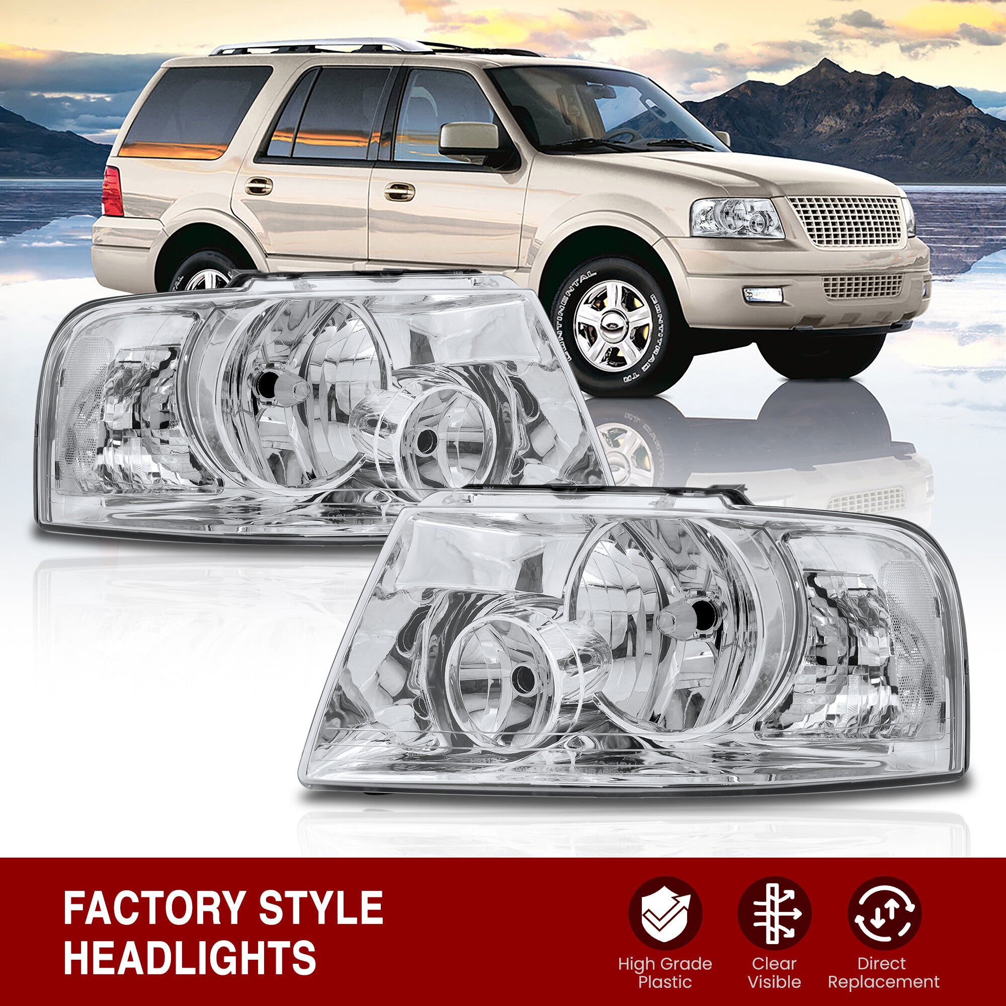 Ford Expedition 2003-2006 Factory Style Headlights Chrome Housing Clear Len Clear Reflector
