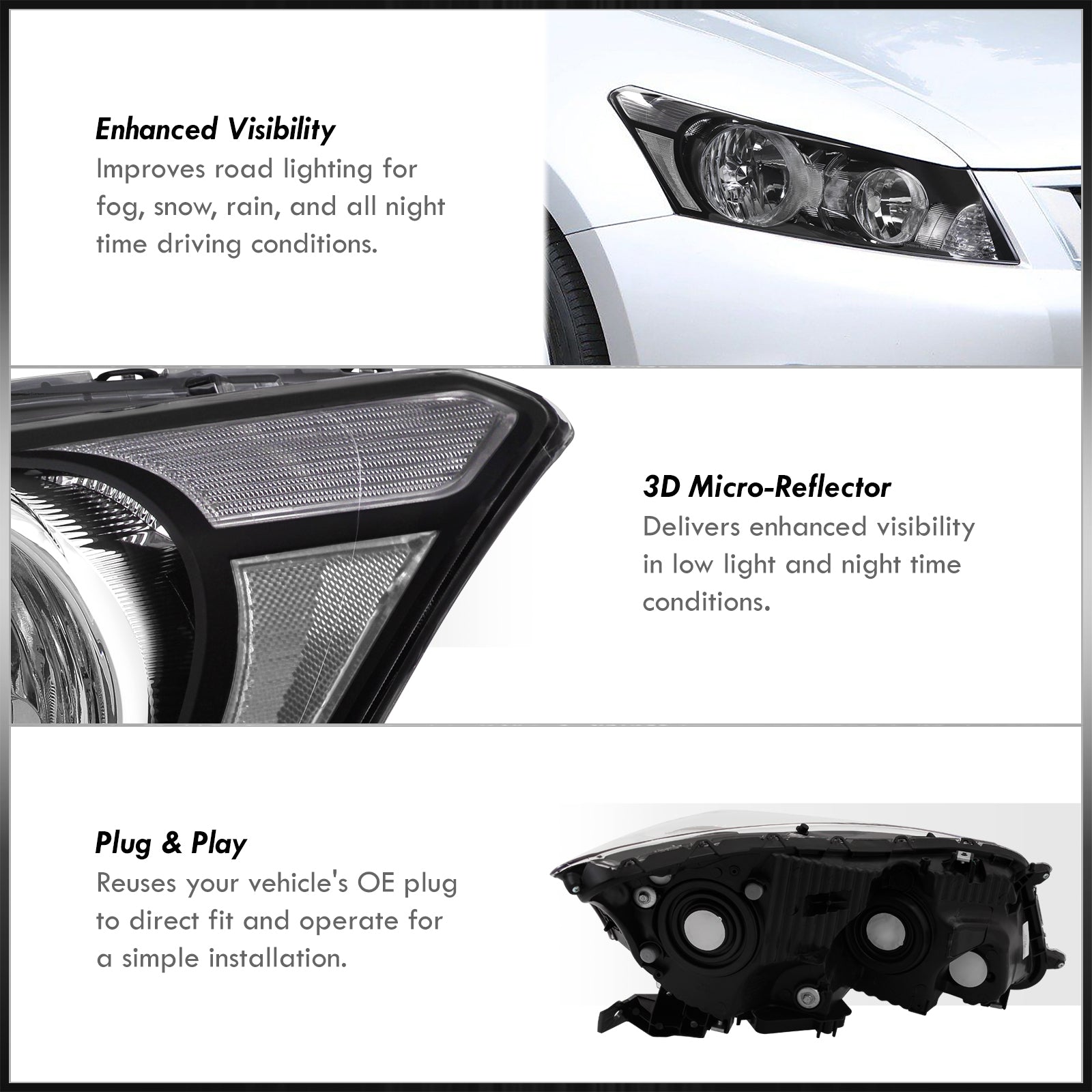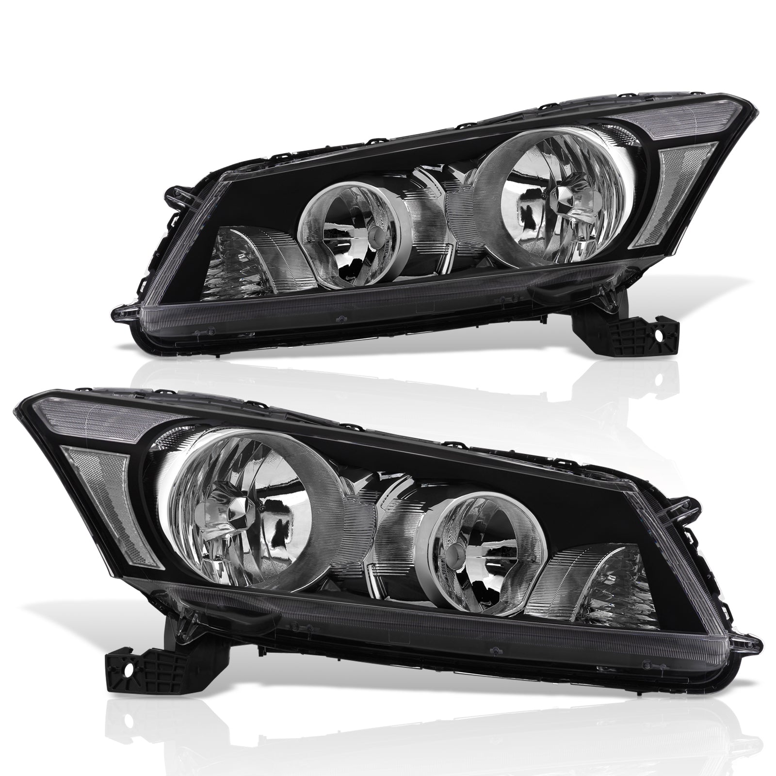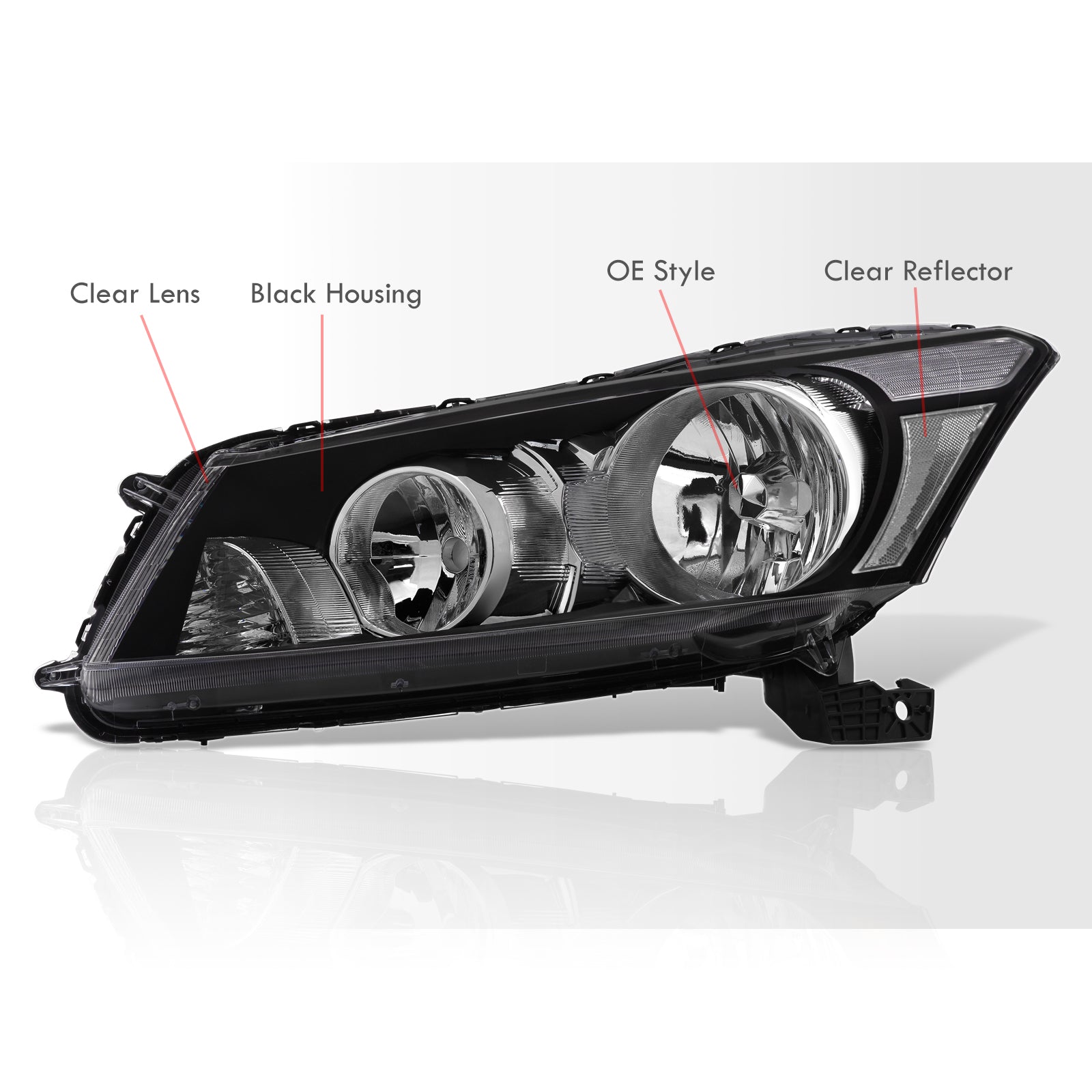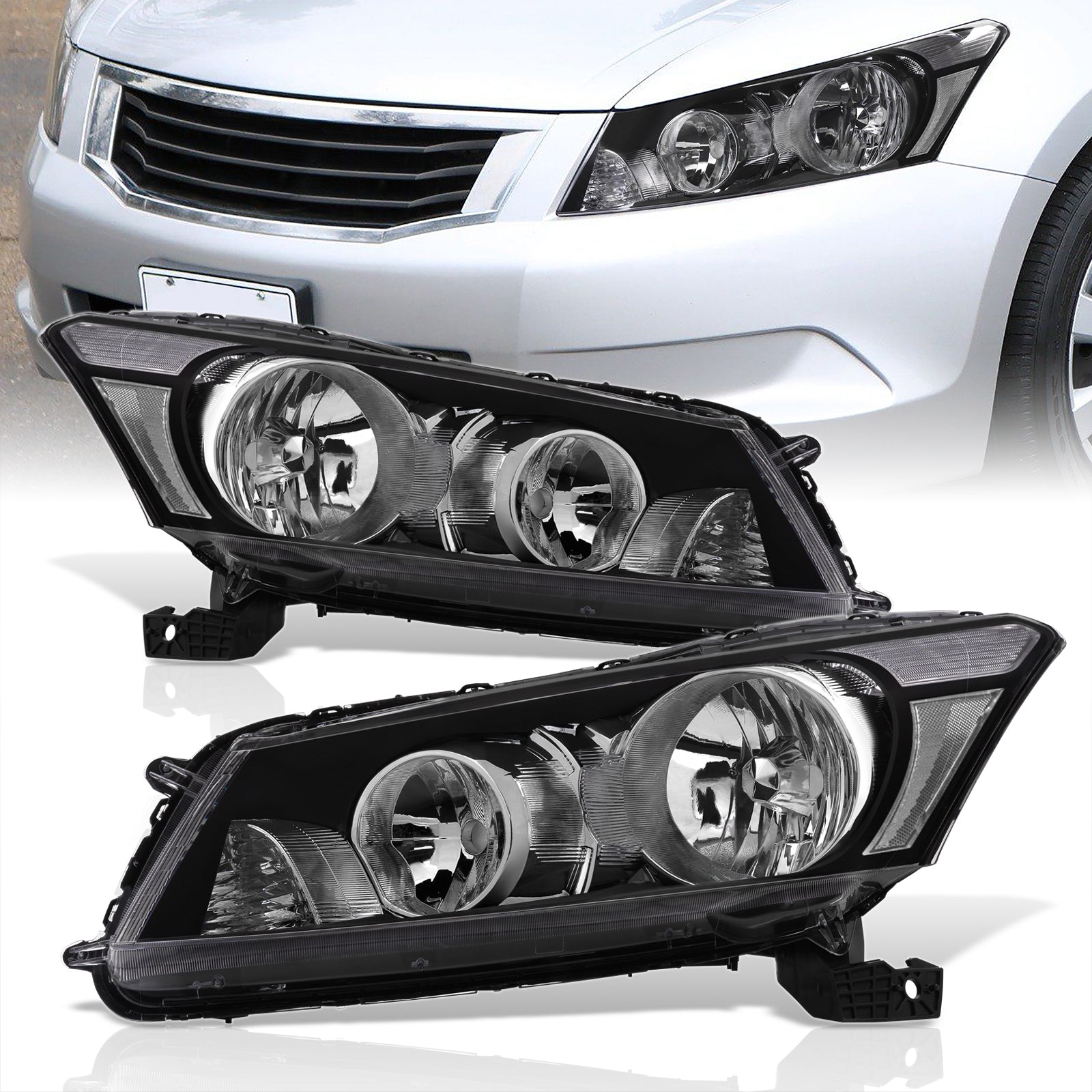 Honda Accord Sedan 2008-2012 Factory Style Headlights Black Housing Clear Len Clear Reflector