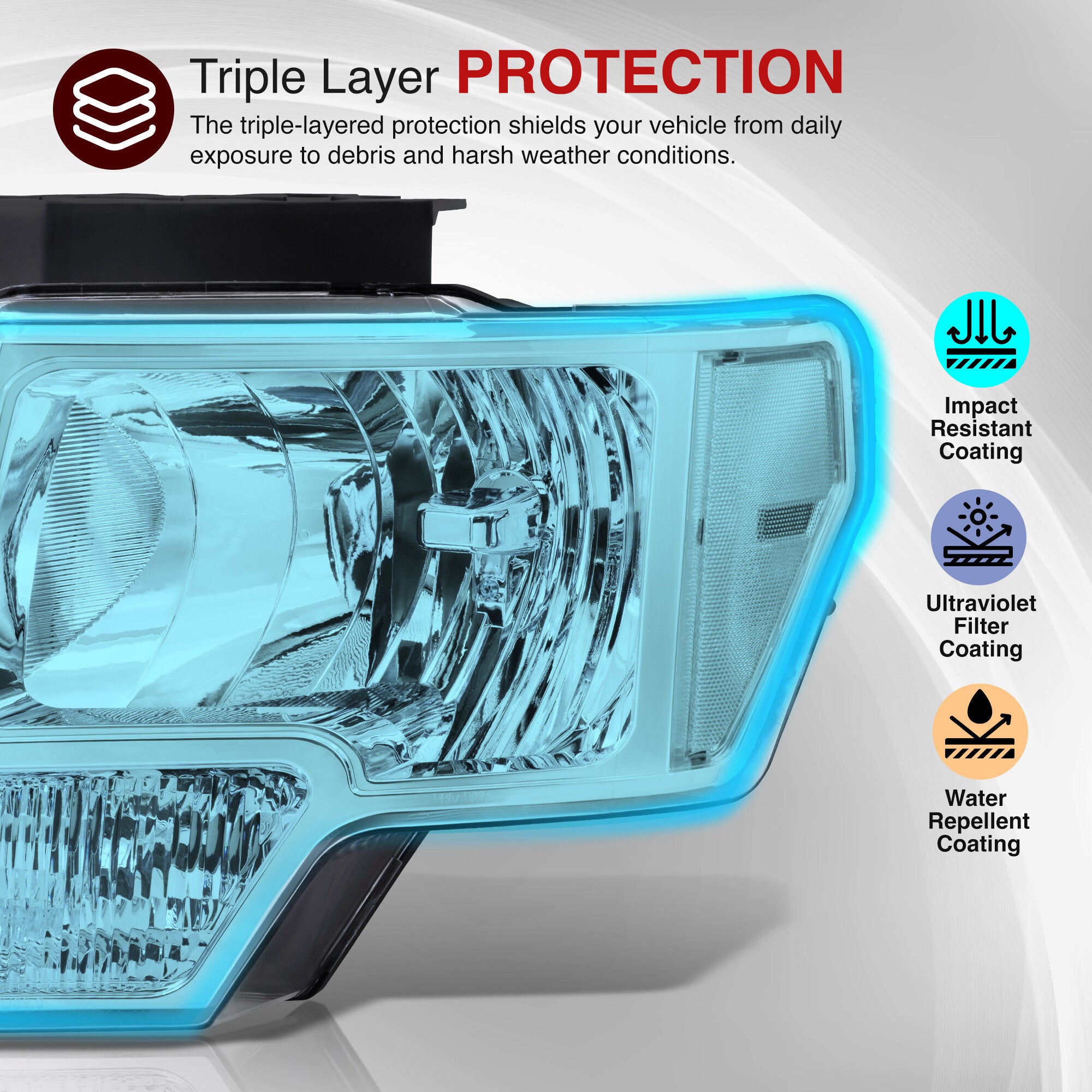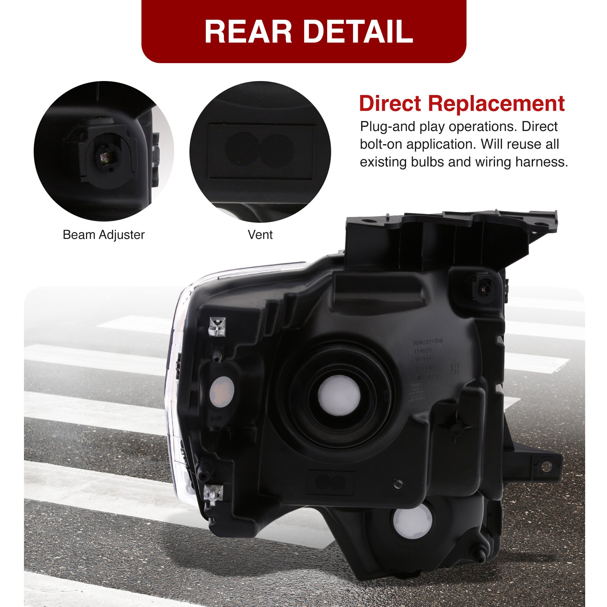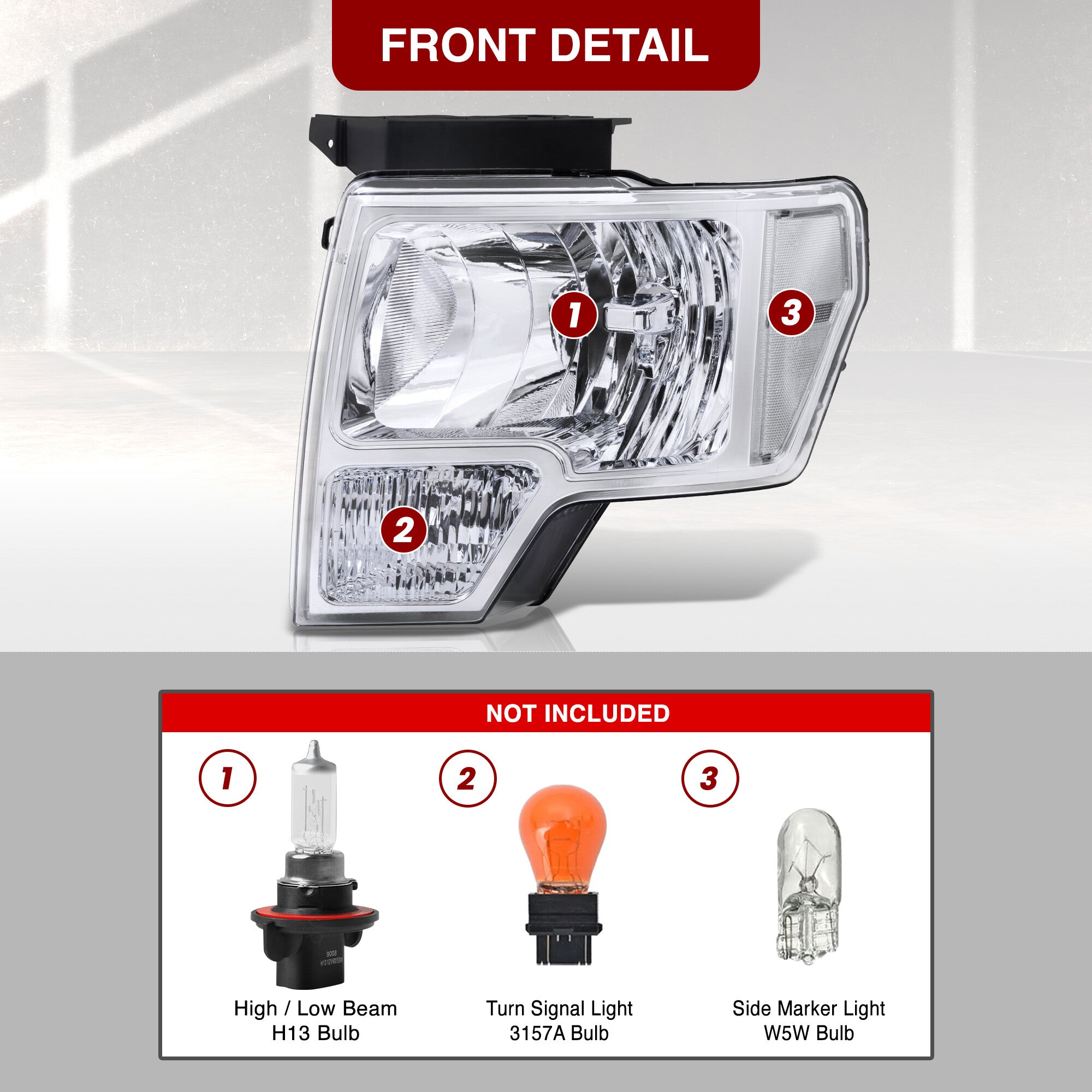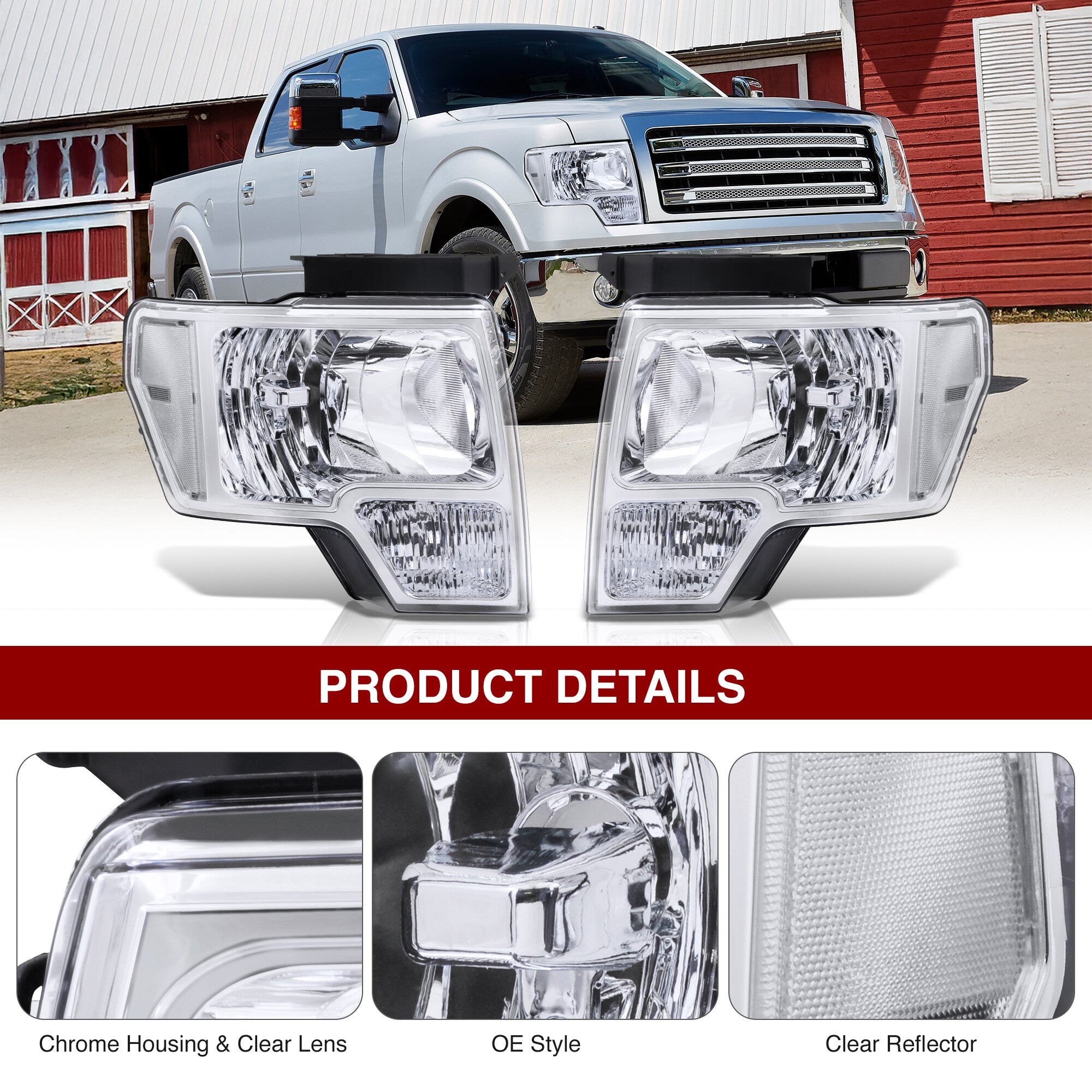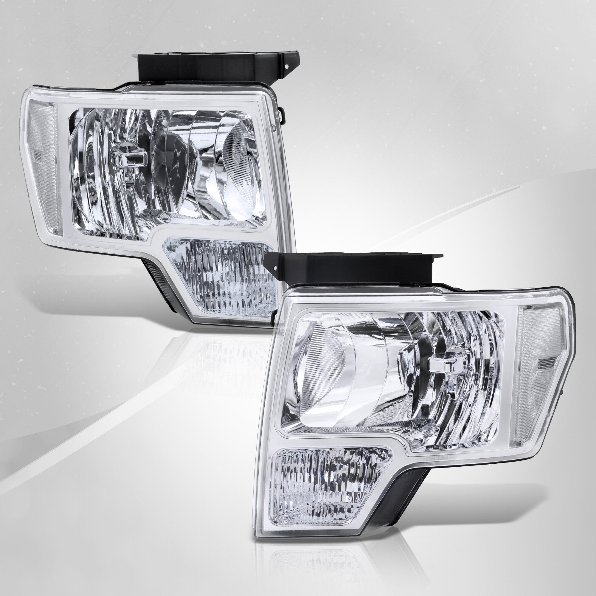 Ford F150 2009-2014 Factory Style Headlights Chrome Housing Clear Len Clear Reflector (Halogen Models Only)