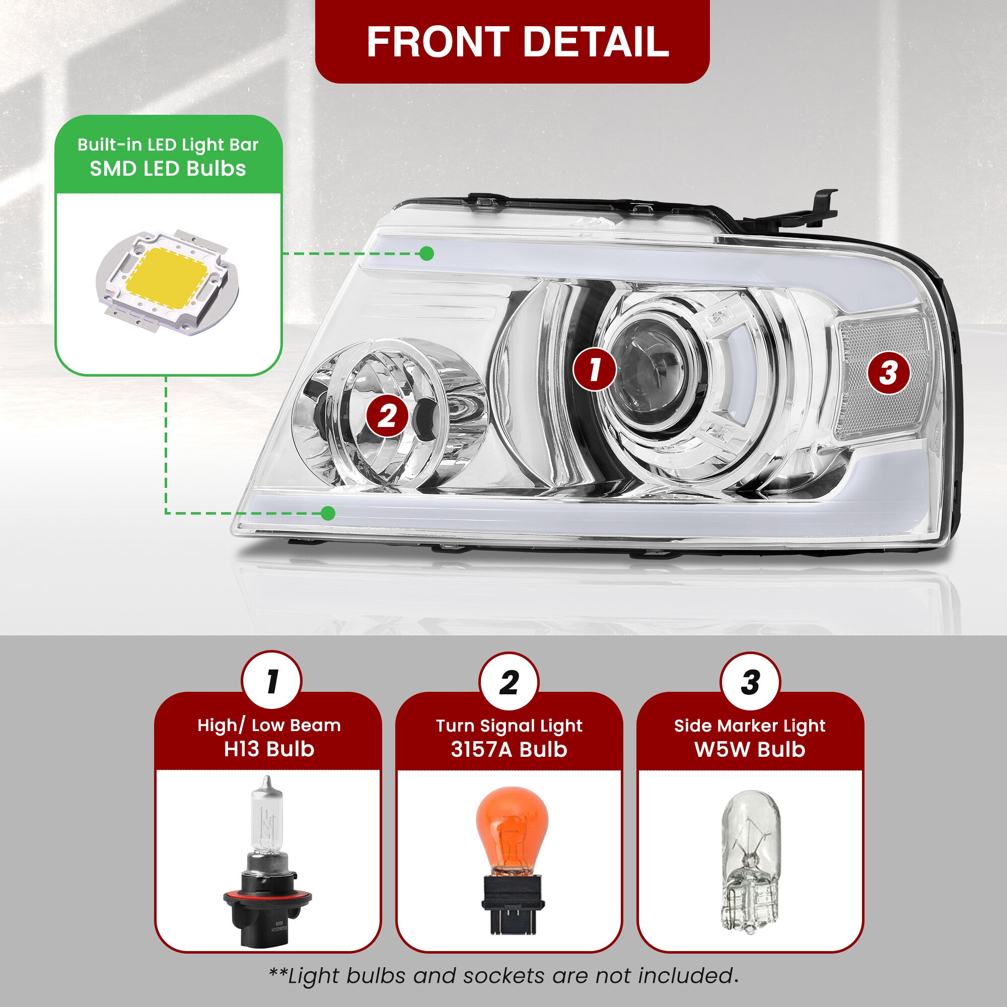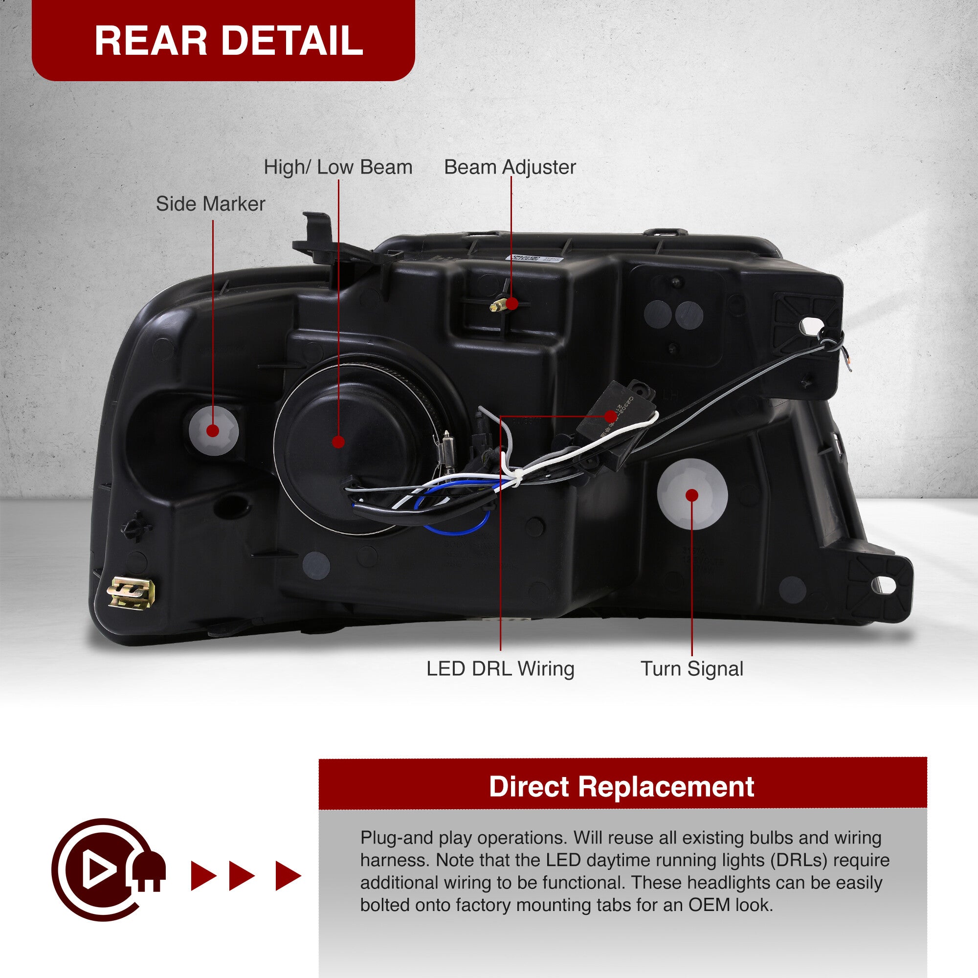 - Replaces old headlights with updated projectors lights to provide constant and balanced illumination during operation.