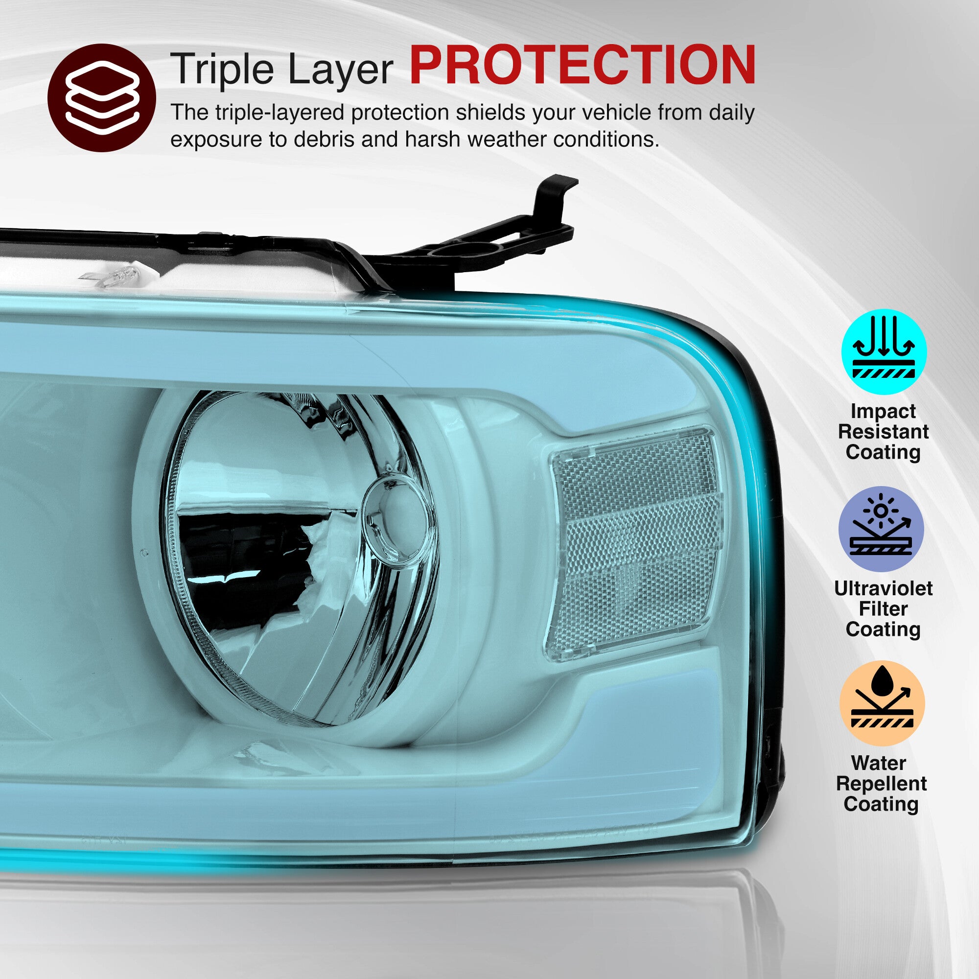 • Replaces old headlights with updated LED DRL lights to provide constant and balanced illumination during operation.