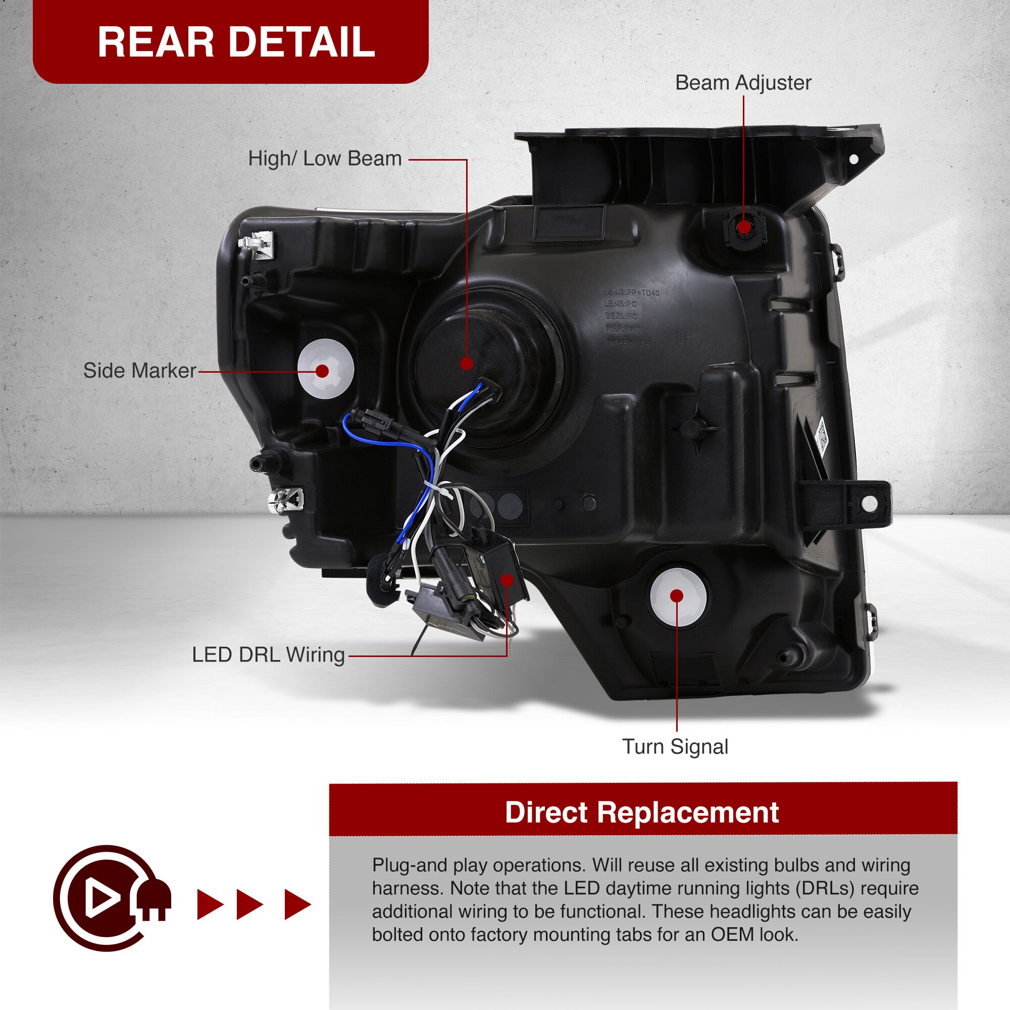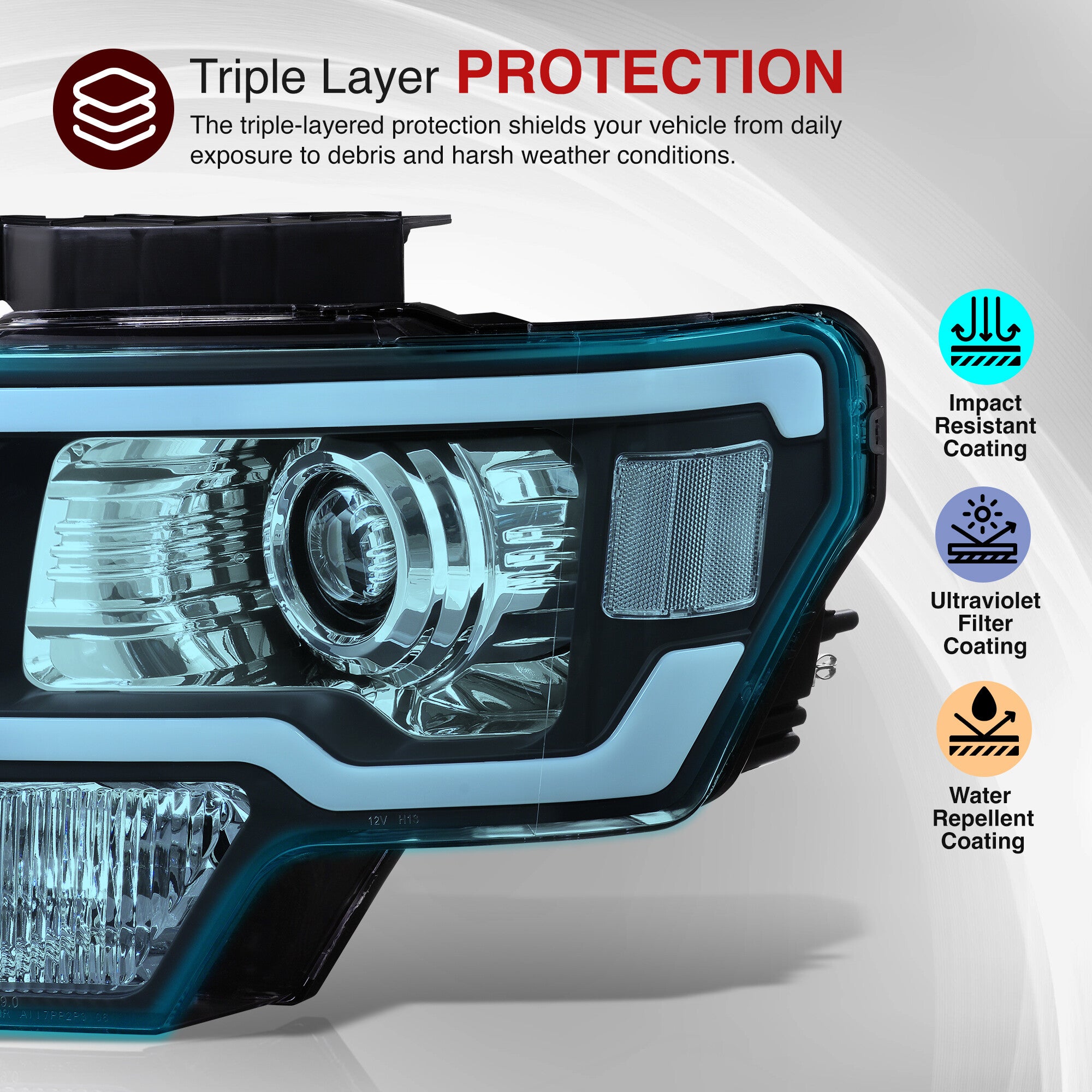 - Replaces old headlights with updated projectors lights to provide constant and balanced illumination during operation.