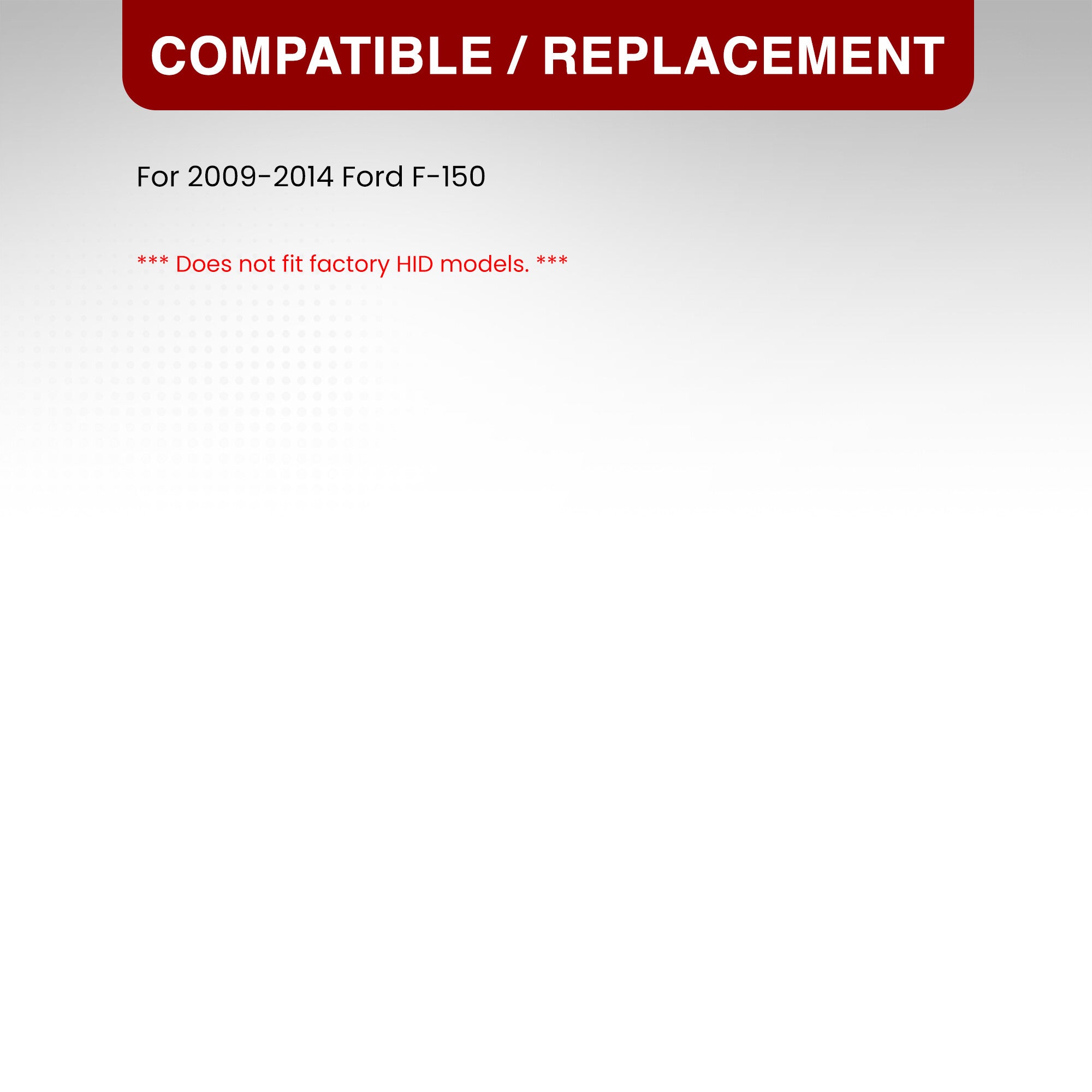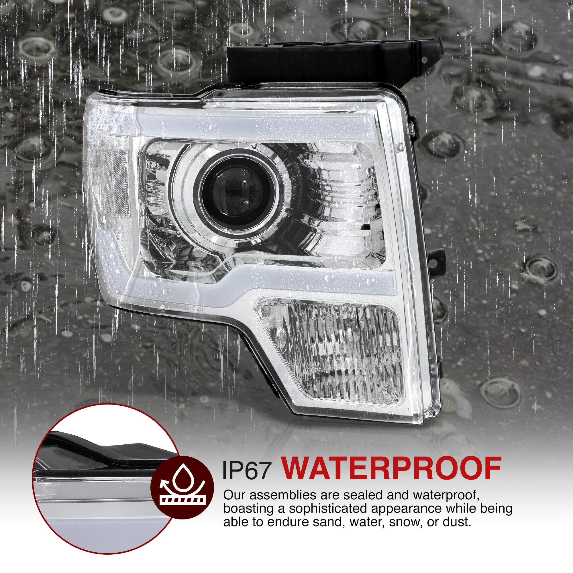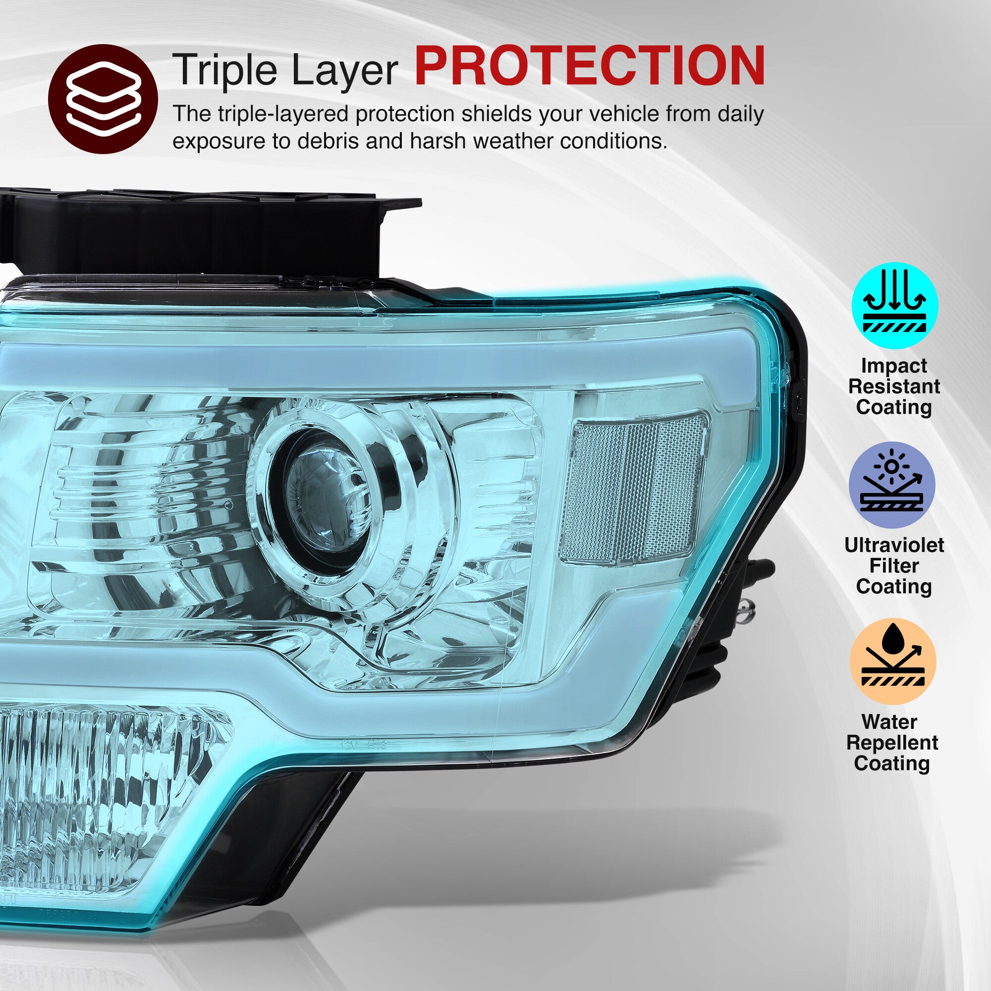 Ford F150 2009-2014 LED DRL Bar Projector Headlights Chrome Housing Clear Len Clear Reflector (Halogen Models Only)