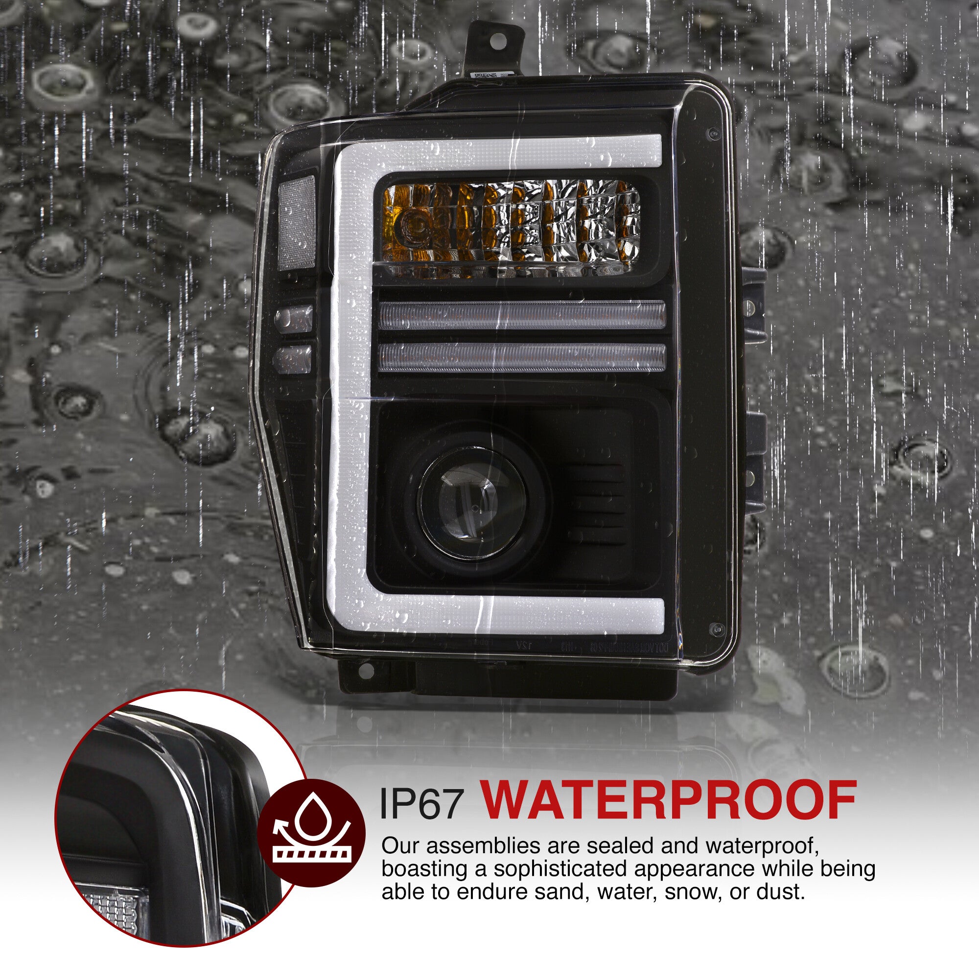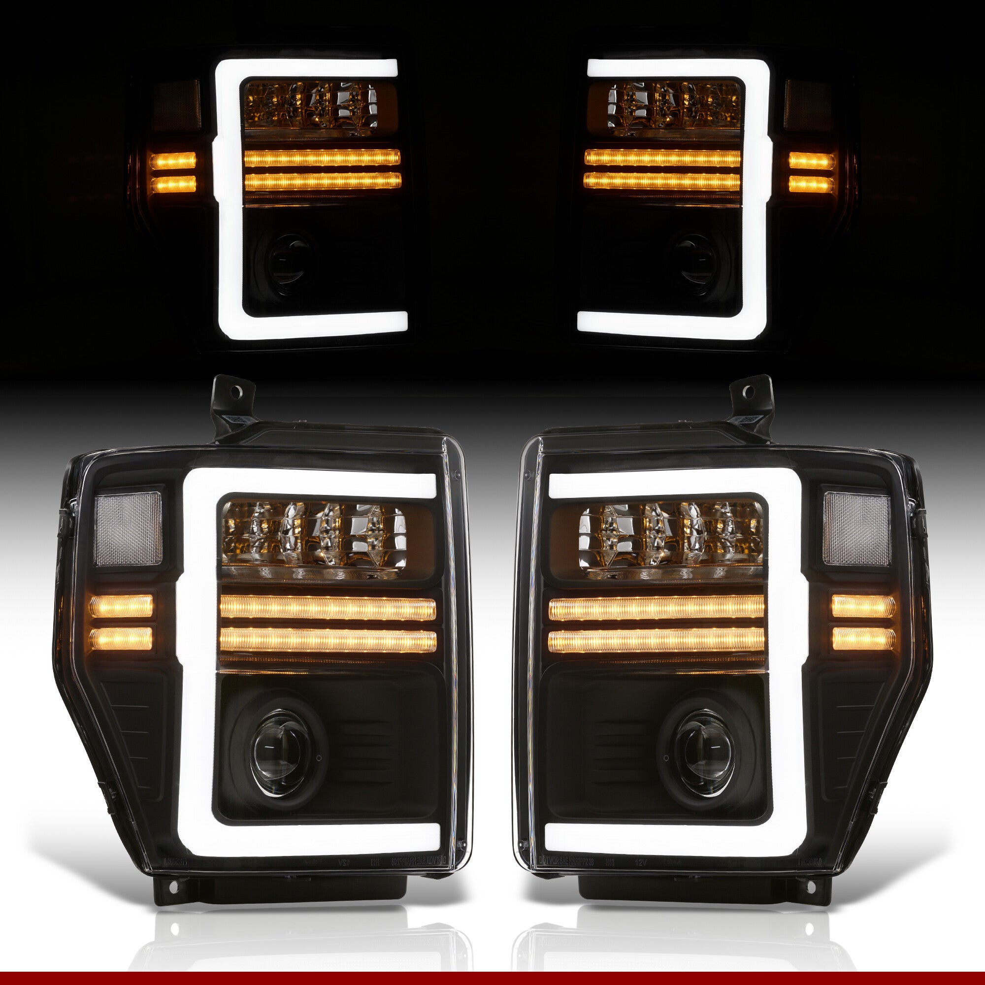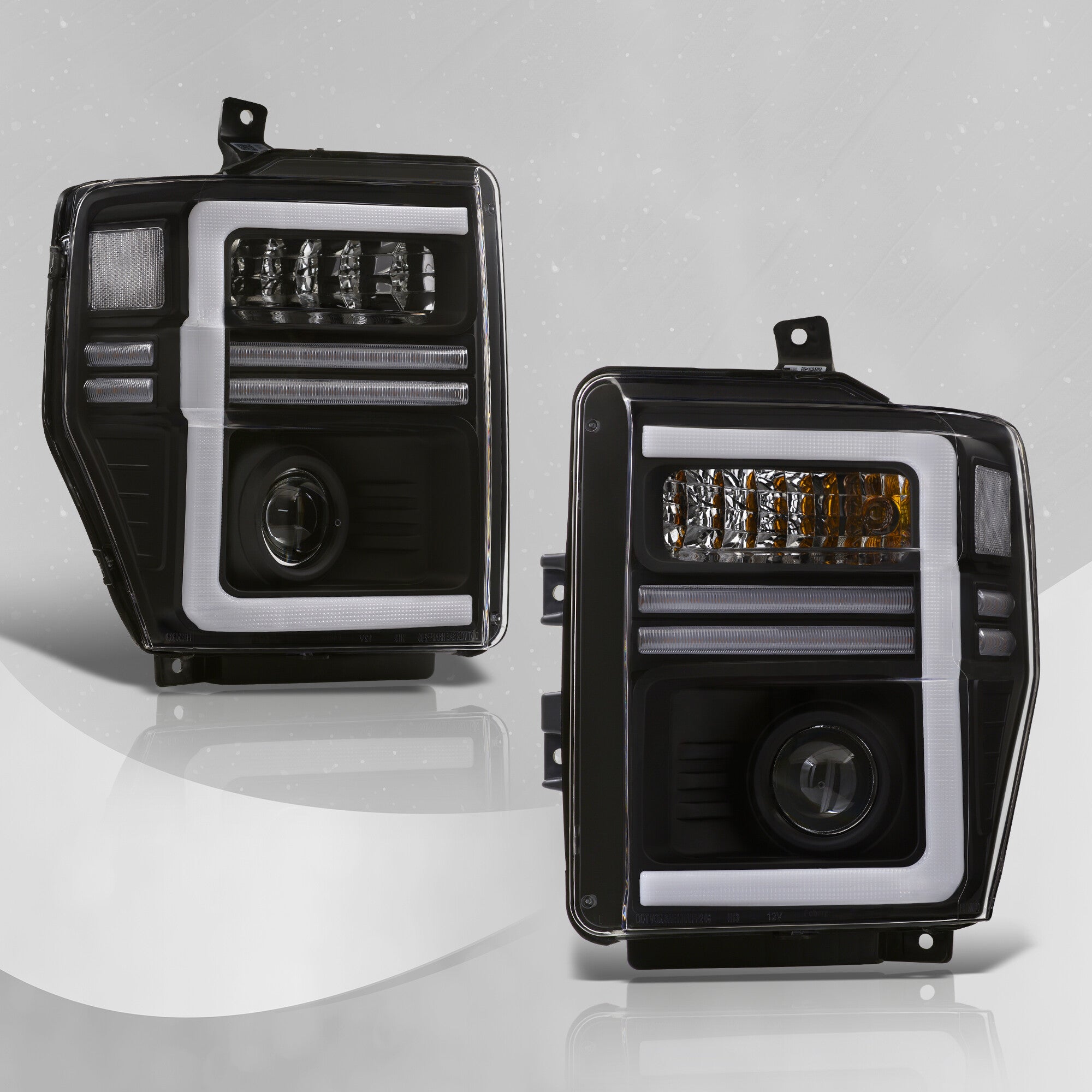 - Direct replacement projector headlights with sequential LED DRL signals.