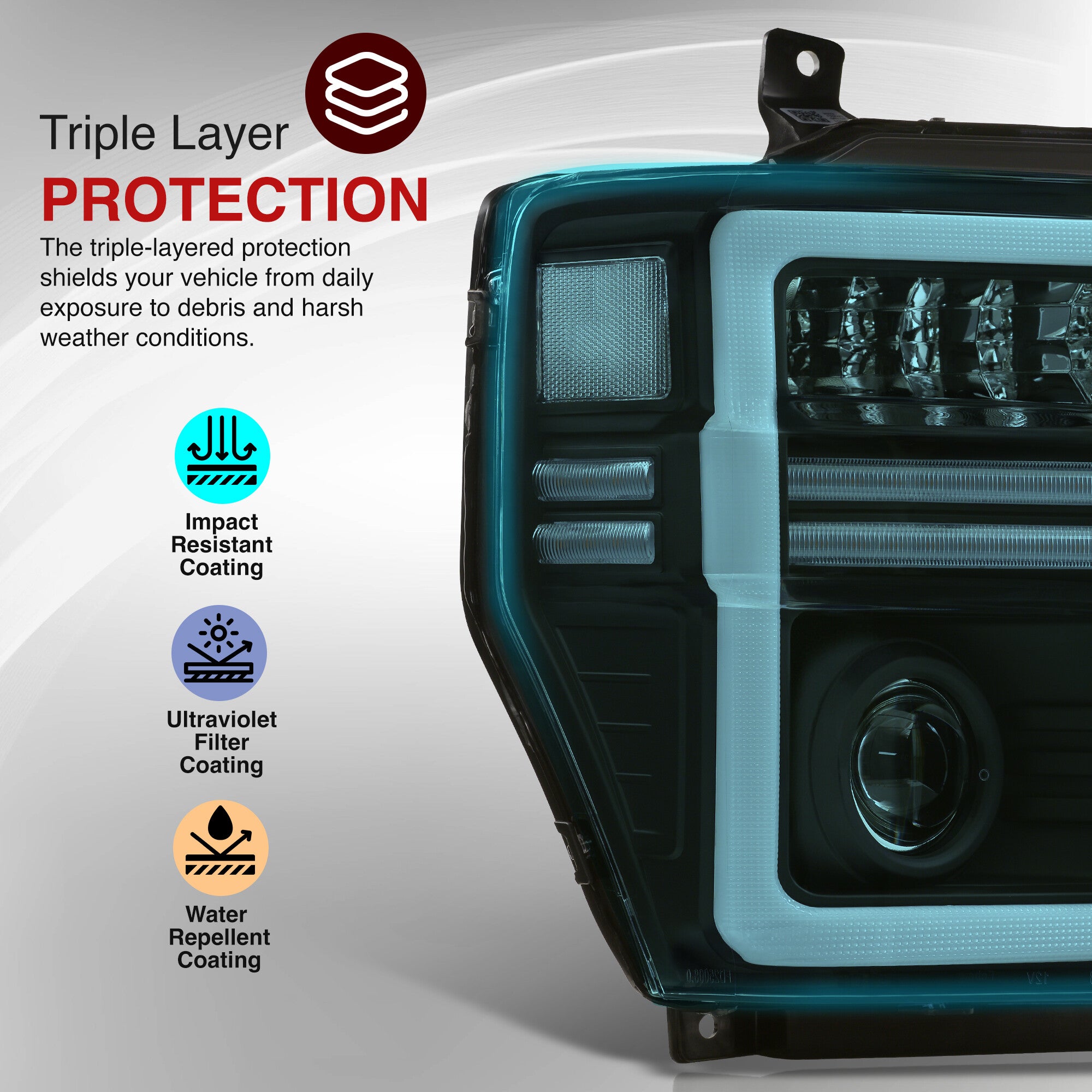 - Replaces old headlights with updated LED DRL projector lights to provide constant and balanced illumination during operation.