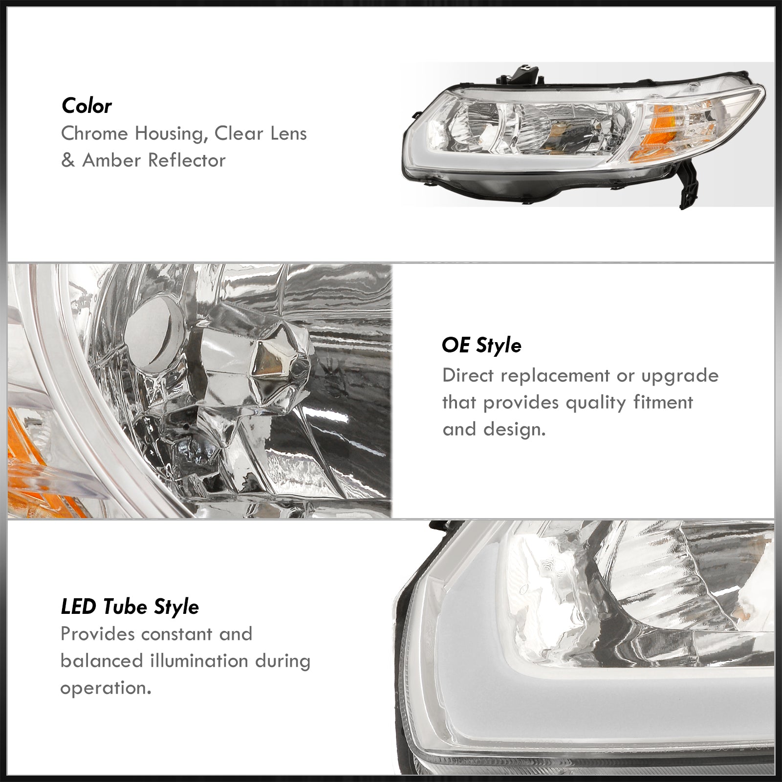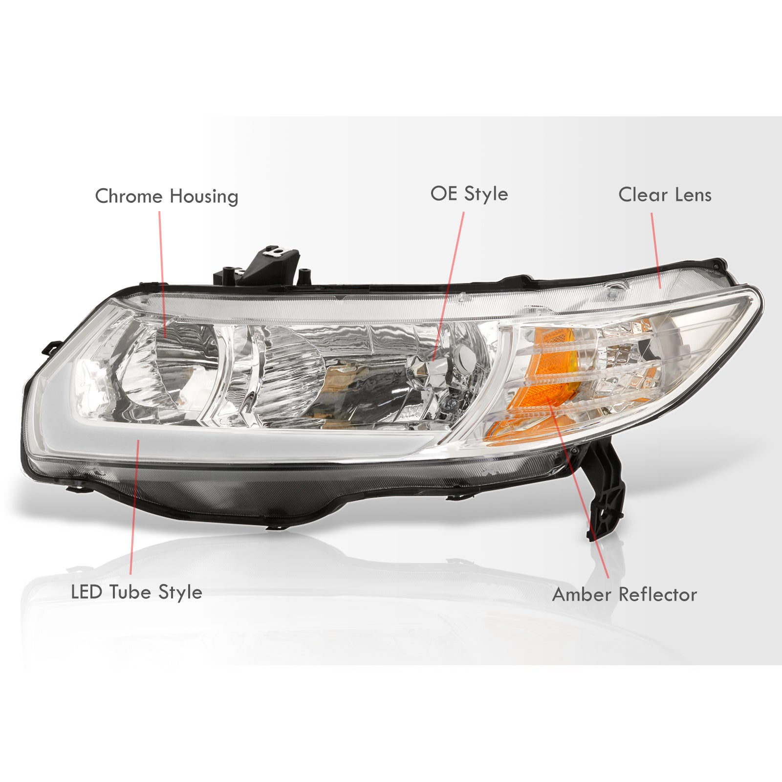 Honda Civic Coupe 2006-2011 LED DRL Bar Factory Style Headlights Chrome Housing Clear Len Amber Reflector