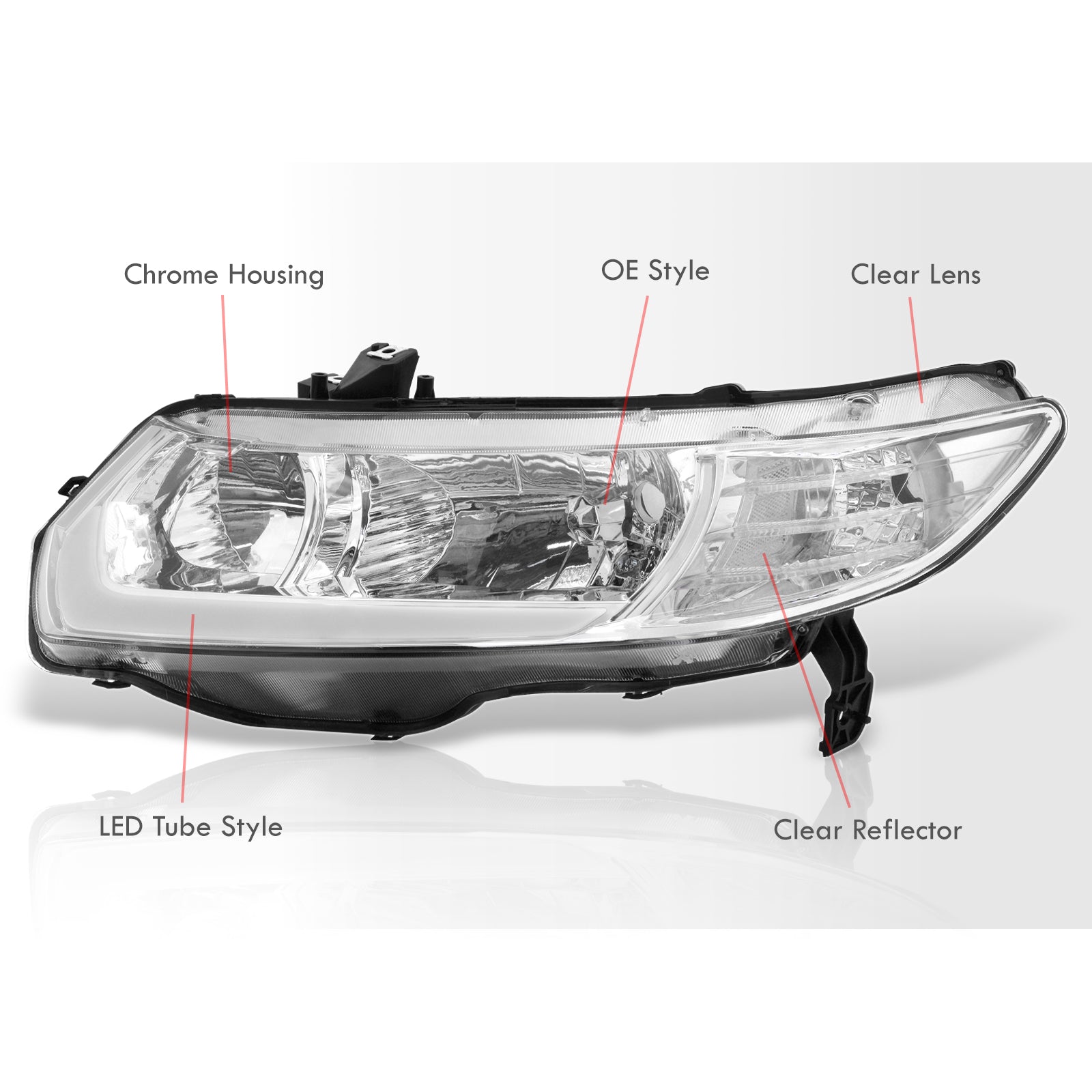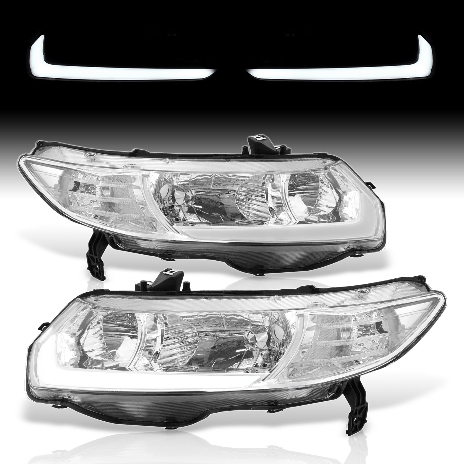 Honda Civic Coupe 2006-2011 LED DRL Bar Factory Style Headlights Chrome Housing Clear Len Clear Reflector
