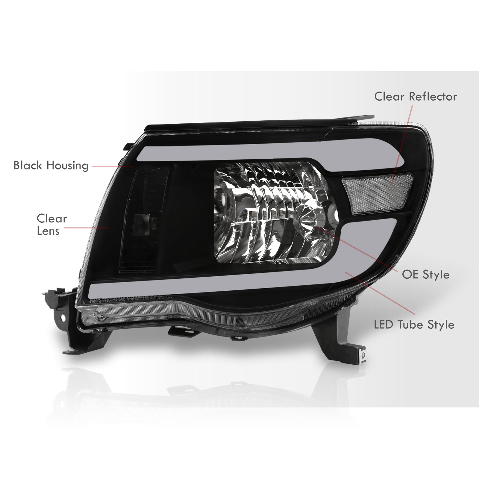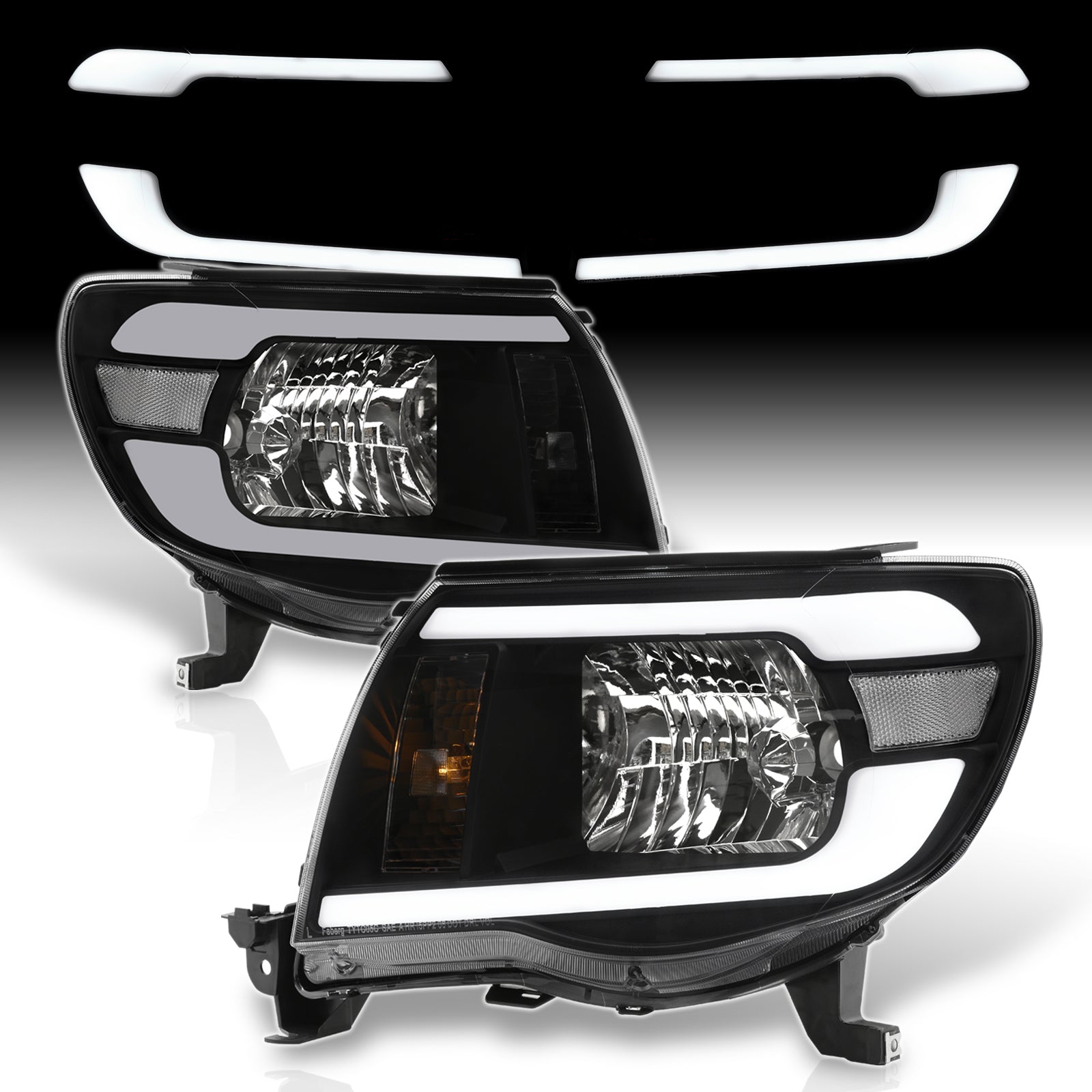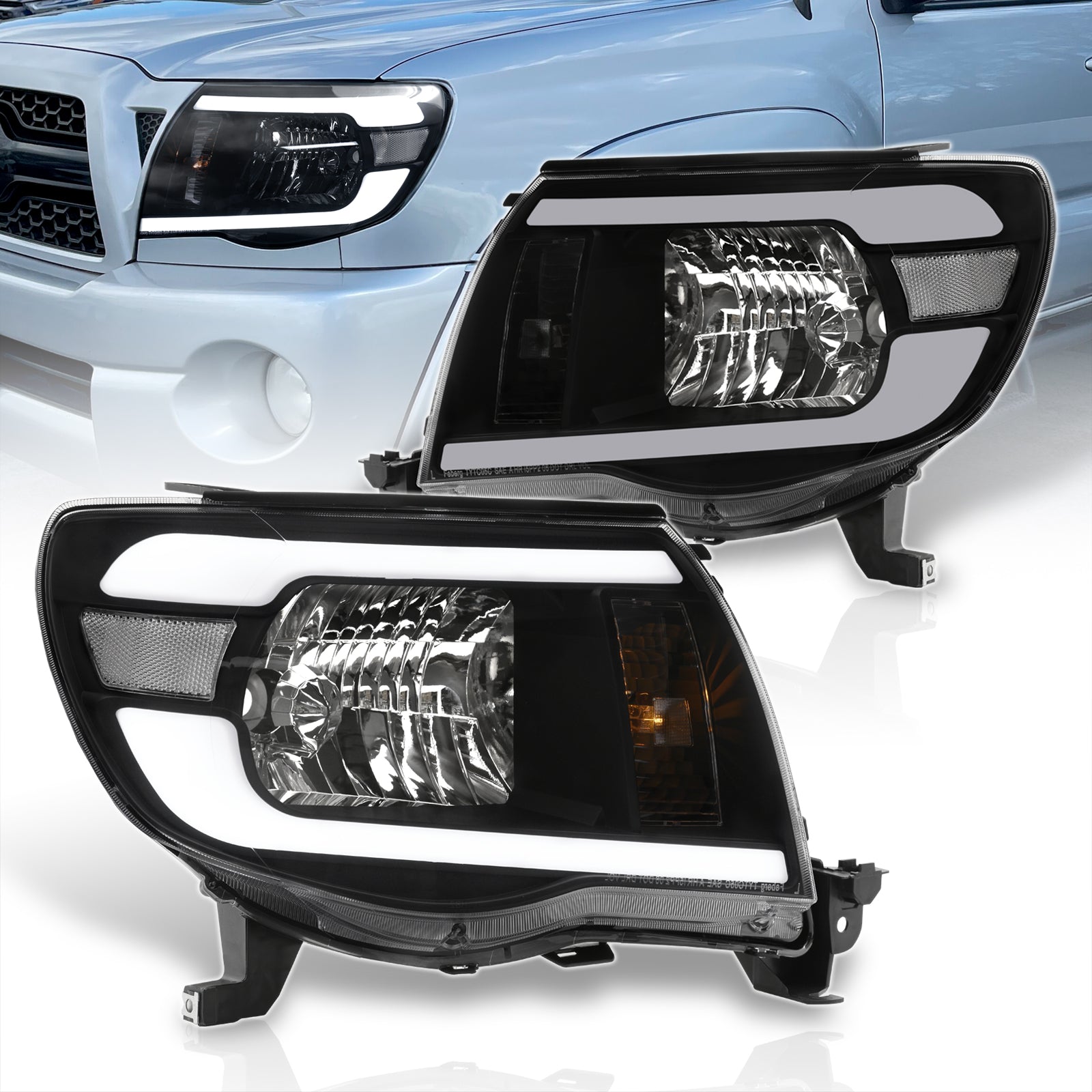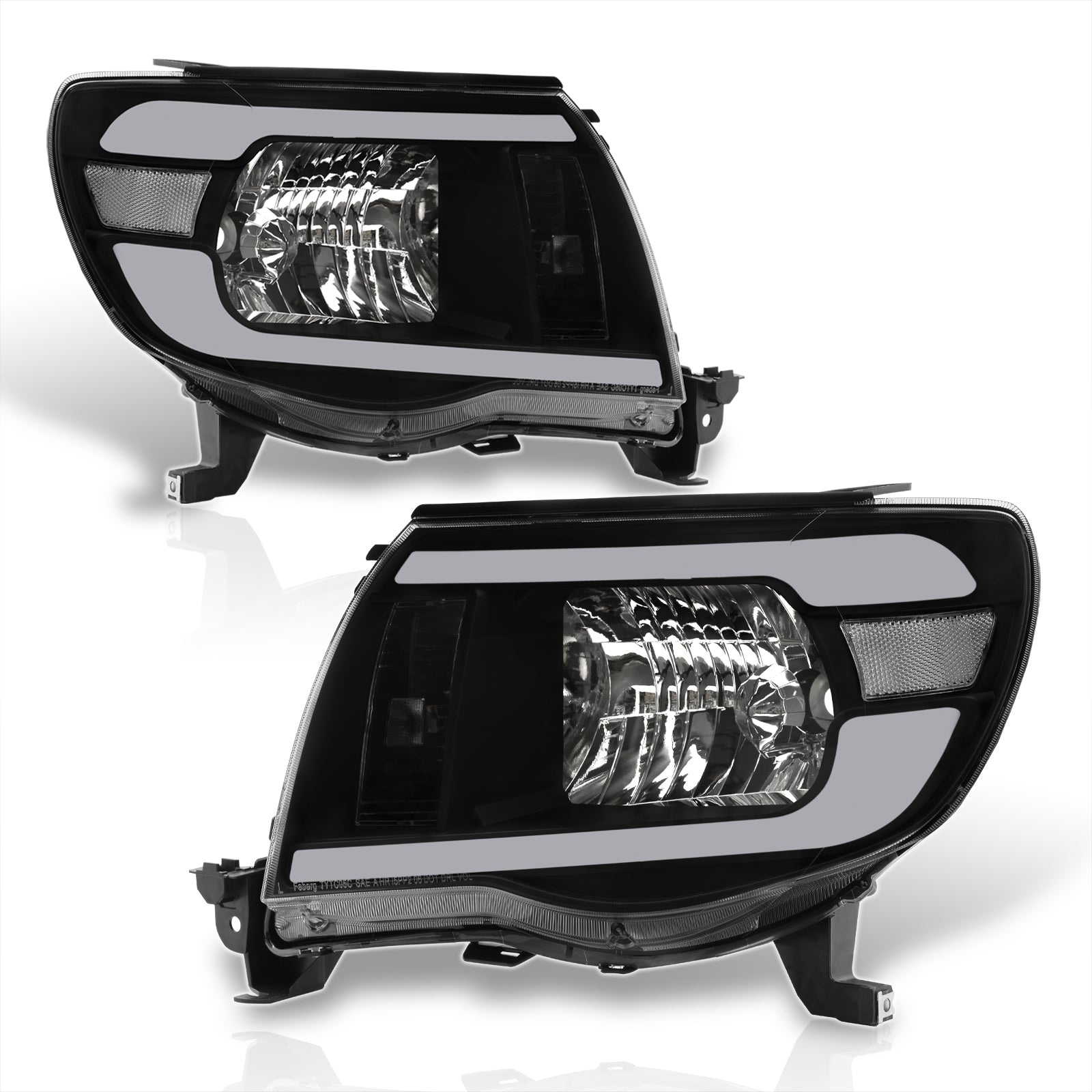 Toyota Tacoma 2005-2011 LED DRL Bar Factory Style Headlights Black Housing Clear Len Clear Reflector