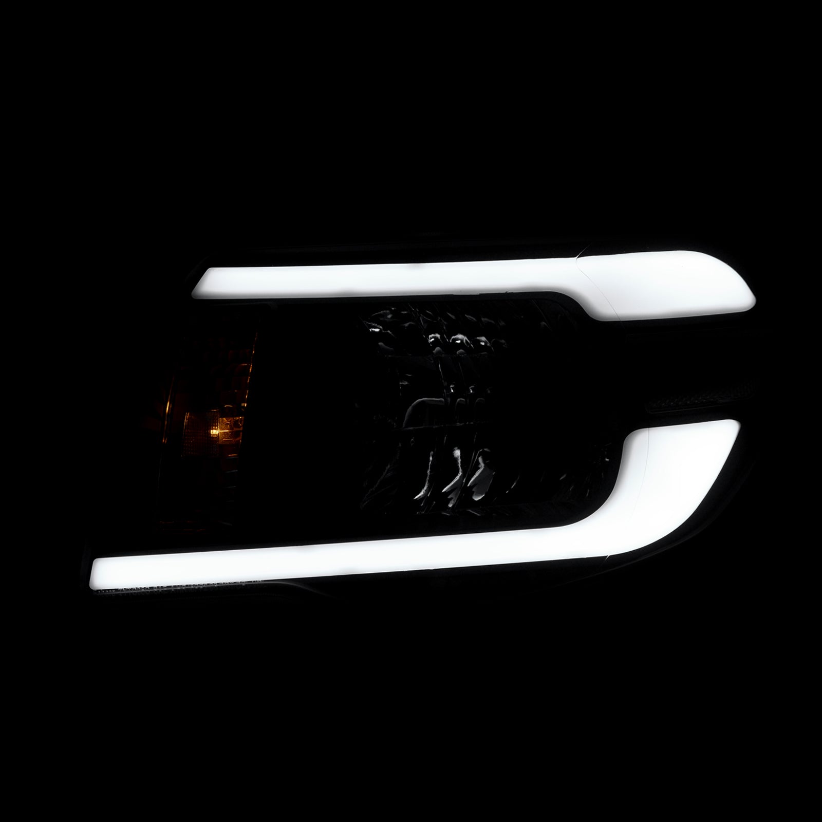 • Direct replacement factory style headlights with LED DRL tubes.