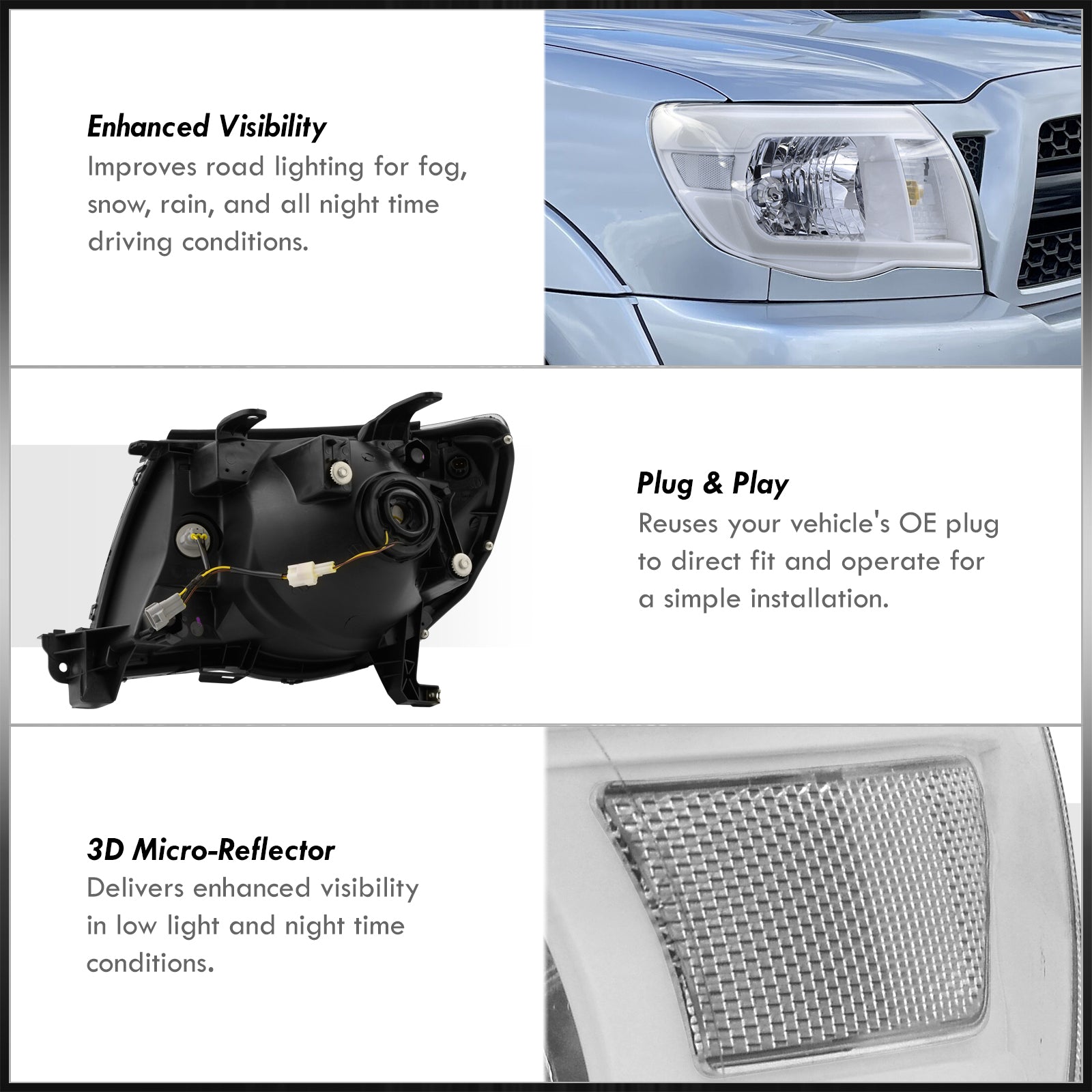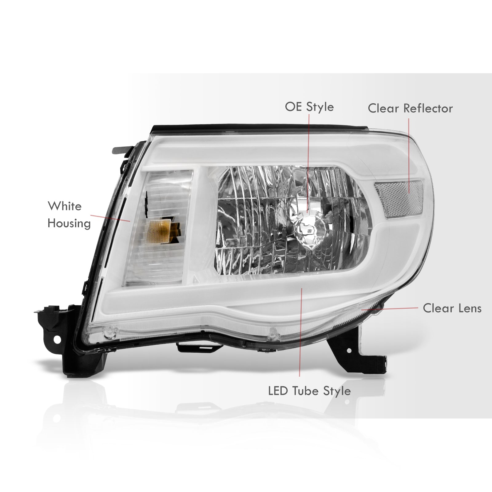 Toyota Tacoma 2005-2011 LED DRL Bar Factory Style Headlights White Housing Clear Len Clear Reflector