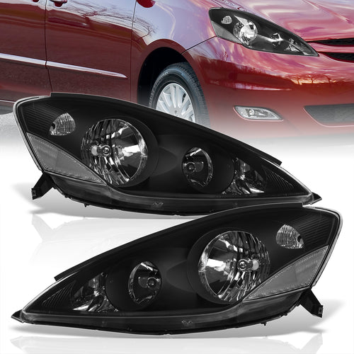 Toyota Sienna 2004-2005 Factory Style Headlights Black Housing Clear Len Clear Reflector (Halogen Models Only)