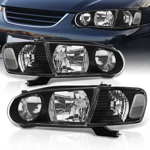 Toyota Corolla 1998-2000 Factory Style Headlights + Corners Black Housing Clear Len Amber Reflector