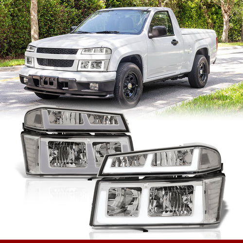 Chevrolet Colorado 2004-2012 LED DRL Bar Factory Style Headlights + Bumpers Black Housing Clear Len Clear Reflector