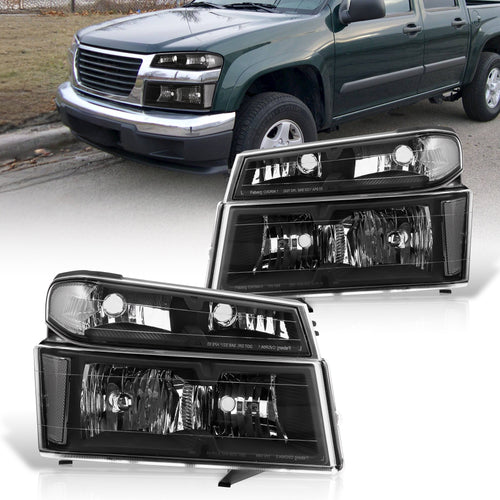 Chevrolet Colorado 2004-2012 Factory Style Headlights + Bumpers Black Housing Clear Len Amber Reflector