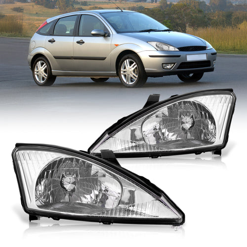 Ford Focus 2000-2004 Factory Style Headlights Chrome Housing Clear Len Clear Reflector