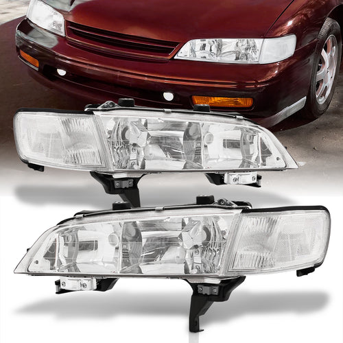 Honda Accord 1994-1997 Factory Style Headlights + Corners Chrome Housing Clear Len Clear Reflector