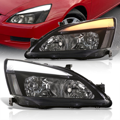Honda Accord 2003-2007 Factory Style Headlights Black Housing Clear Len Amber Reflector