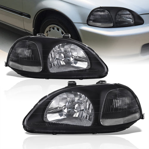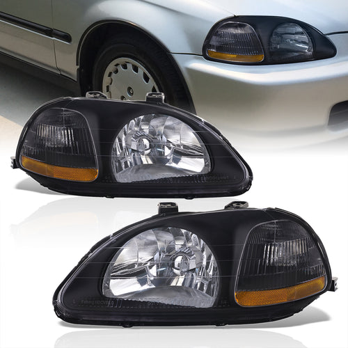 Honda Civic 1996-1998 Factory Style Headlights Black Housing Clear Len Amber Reflector