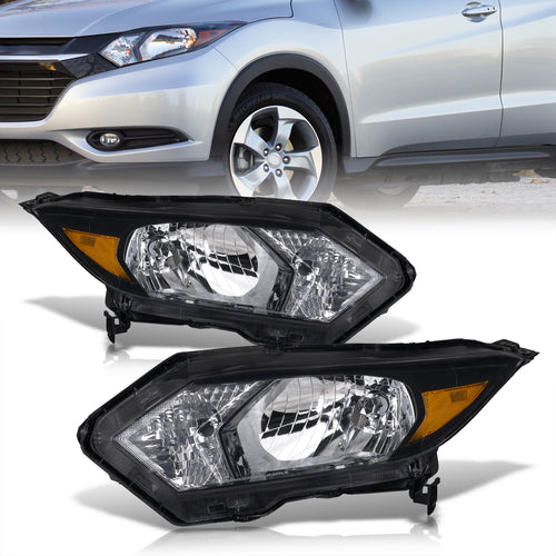 Honda HRV 2016-2018 Headlights Black Housing Clear Len Amber Reflector (Halogen Models Only)
