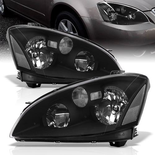 Nissan Altima 2002-2004 Factory Style Headlights Black Housing Clear Len Clear Reflector (Halogen Models Only)