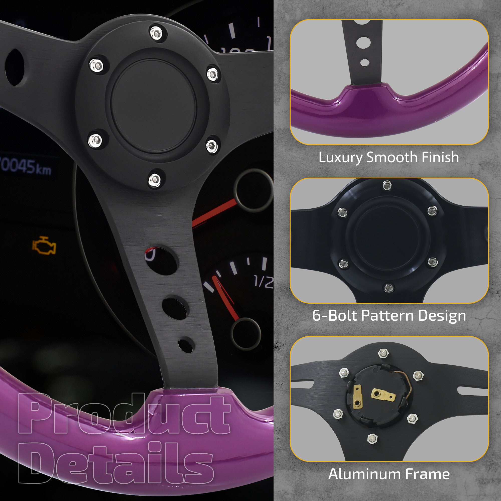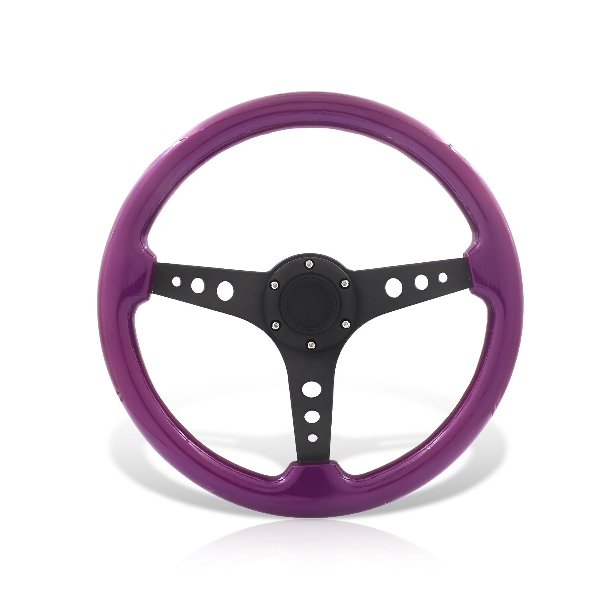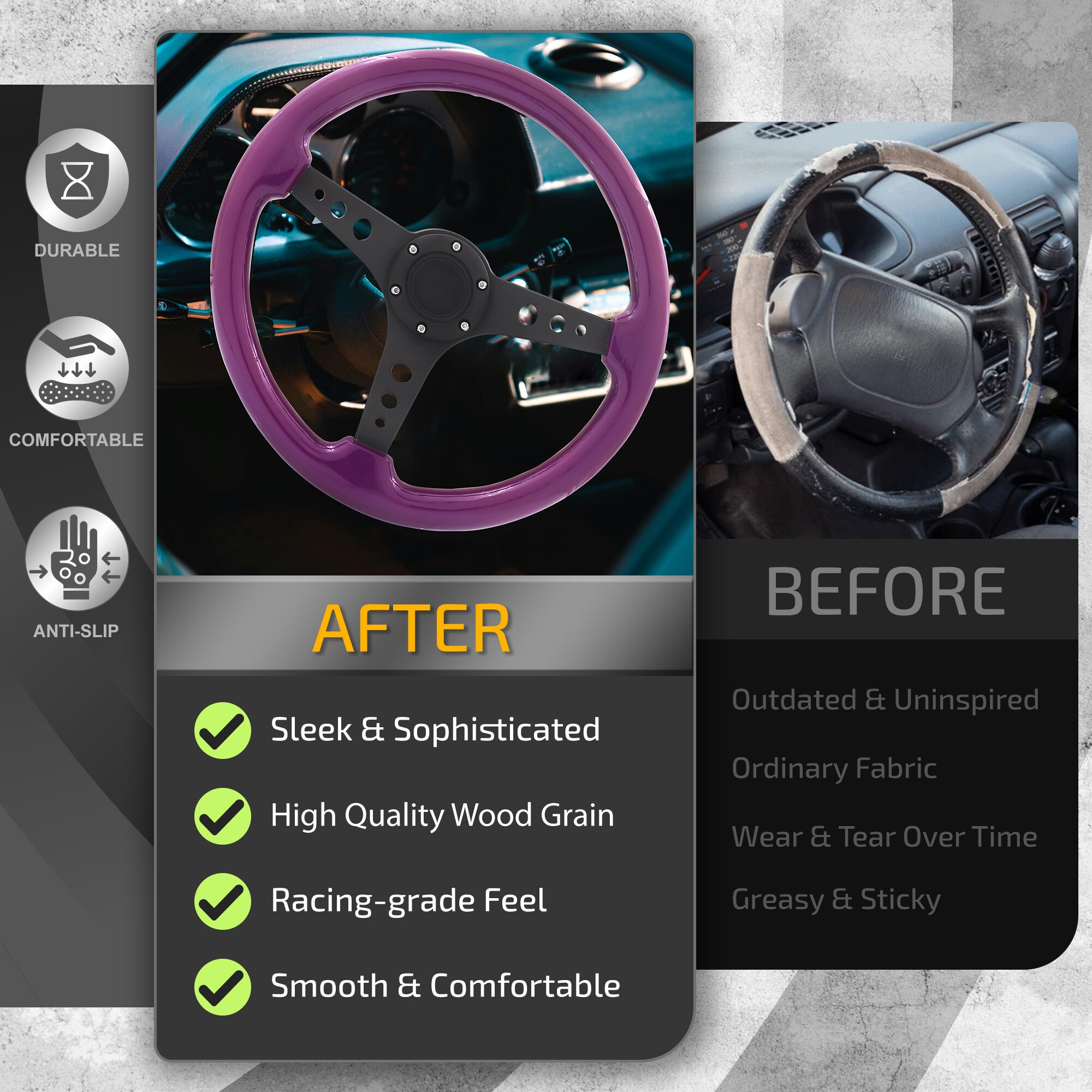 Universal 350mm Wood Grain Style Aluminum Steering Wheel Black Center Purple Wood