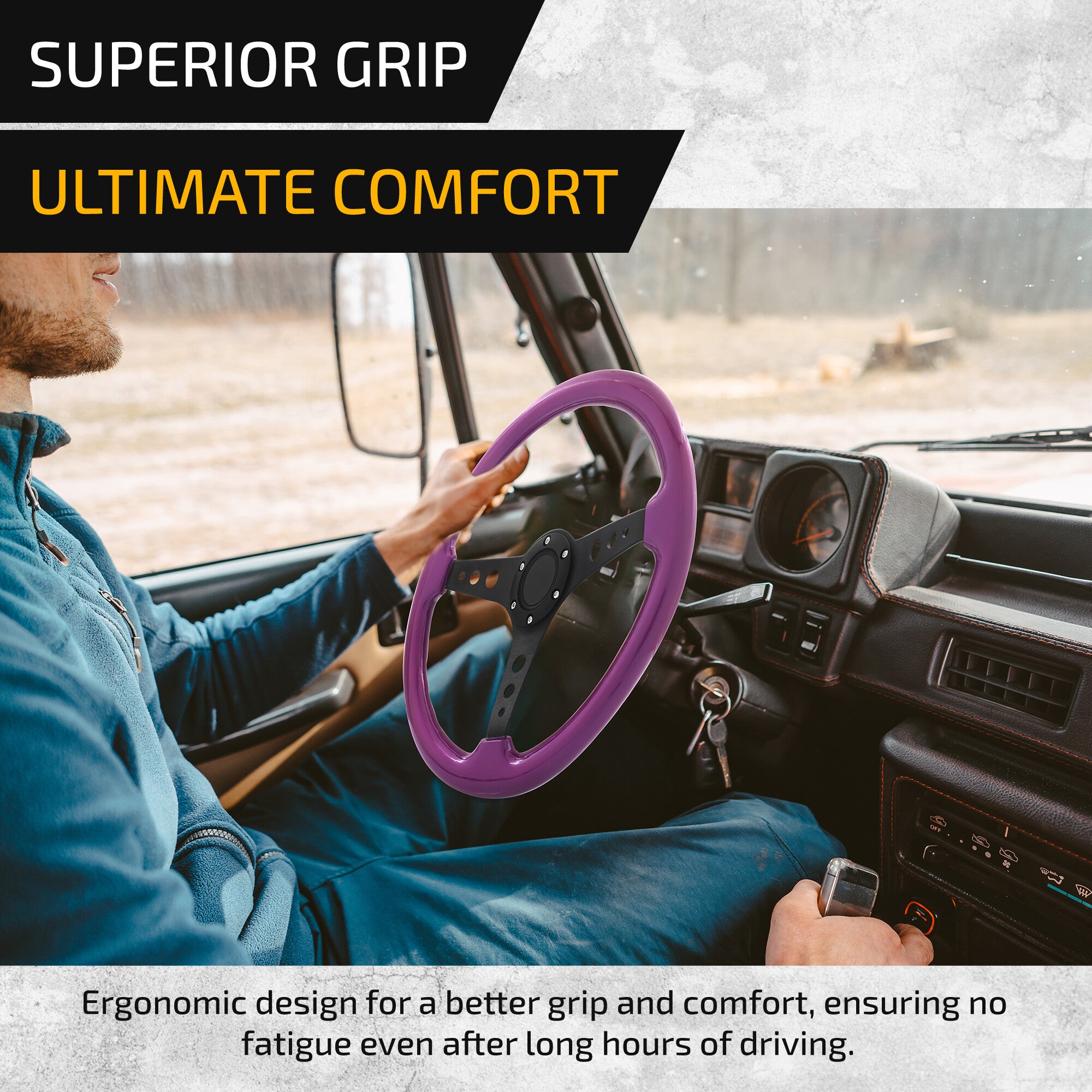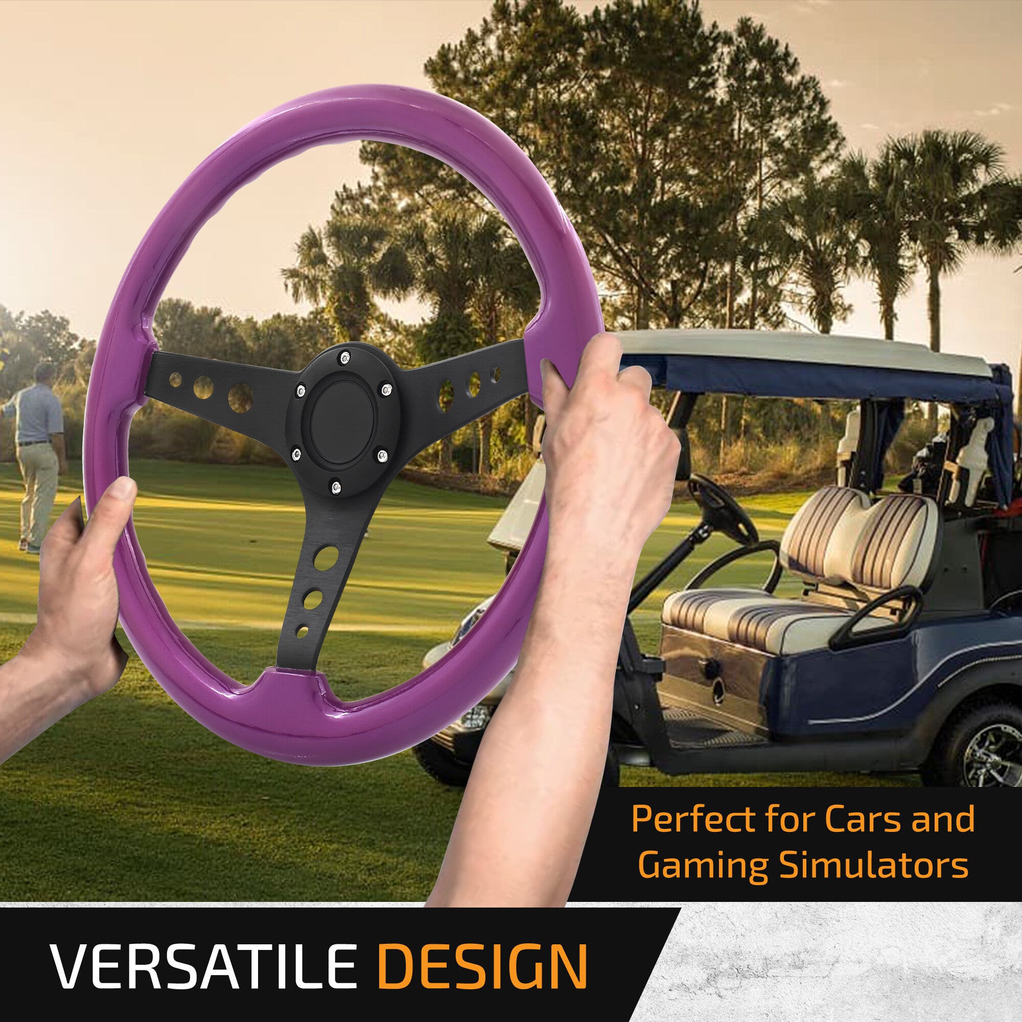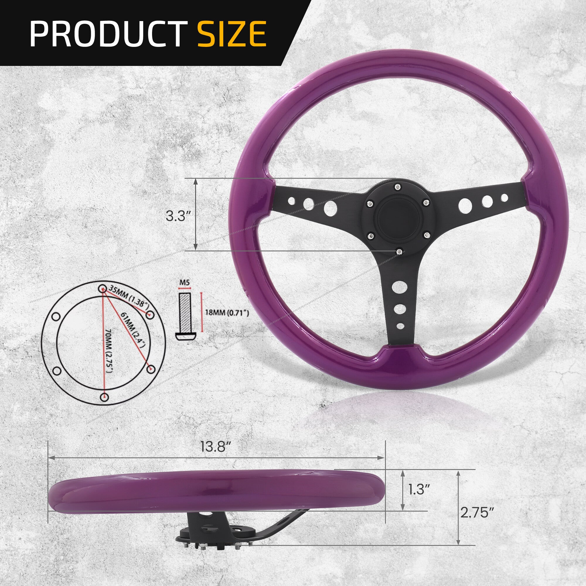 Universal 350mm Wood Grain Style Aluminum Steering Wheel Black Center Purple Wood