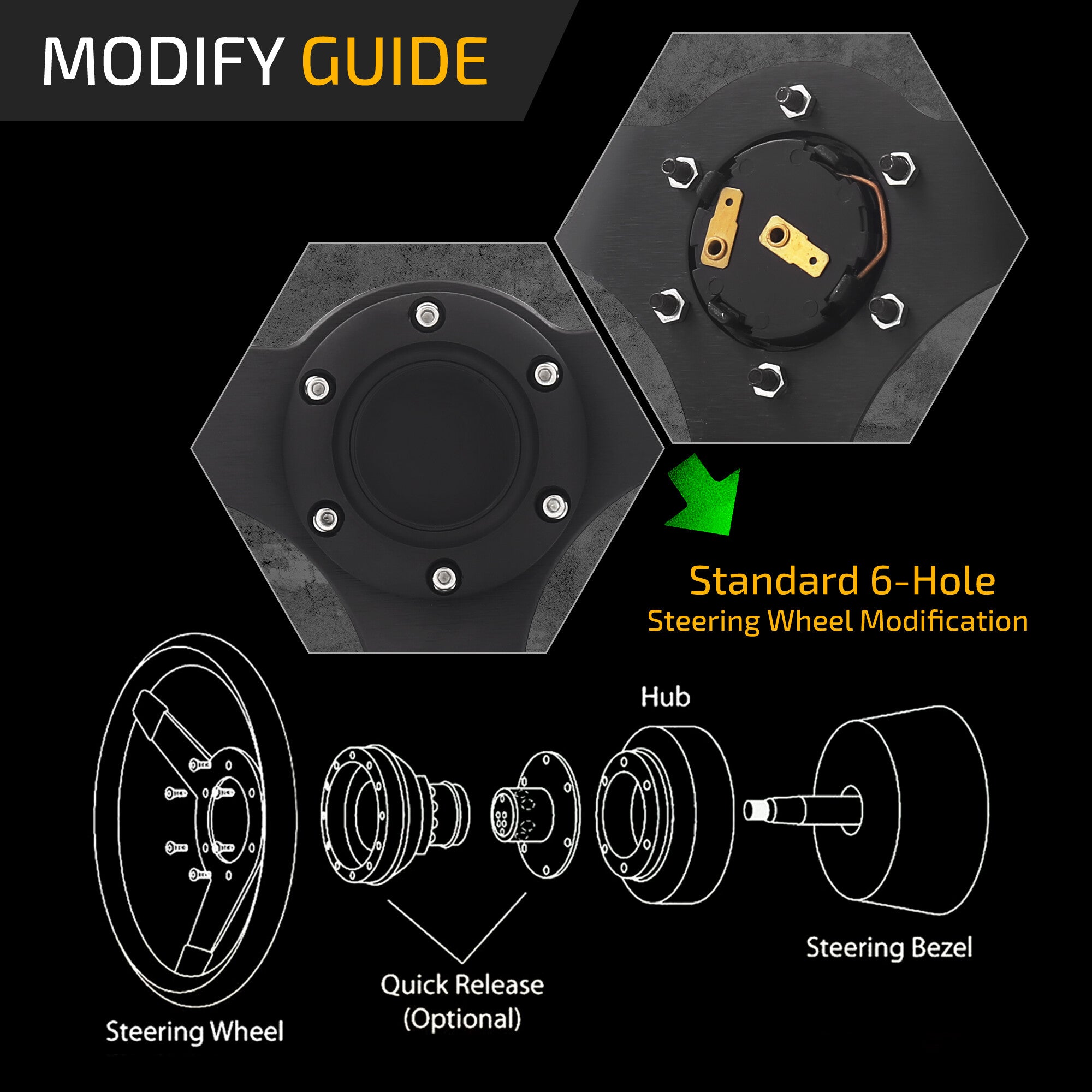 • Fits any aftermarket 6 bolt pattern steering wheel and hub adapter (not included).