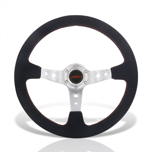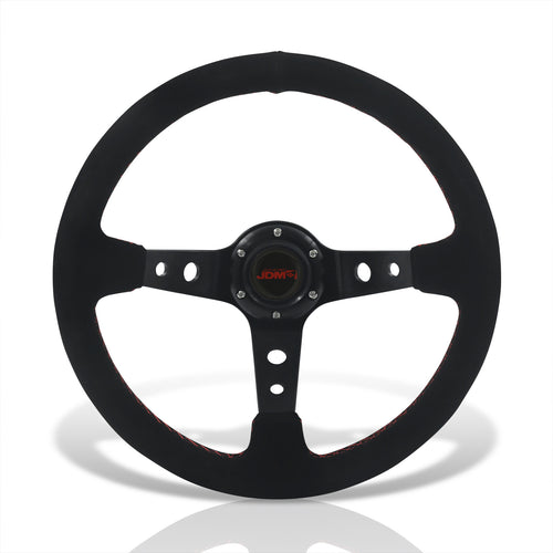 JDM Sport Universal 350mm Suede Deep Dish Style Aluminum Steering Wheel Black with Red Stitching