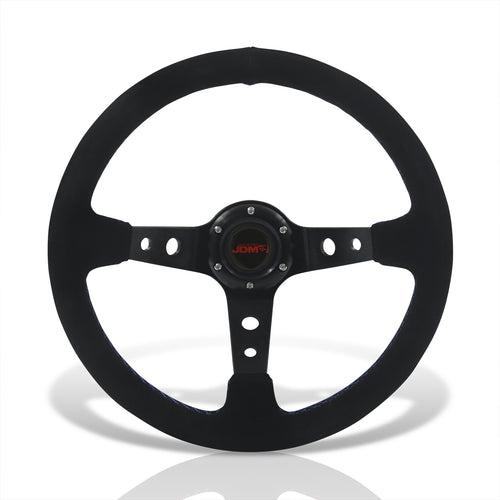 JDM Sport Universal 350mm Suede Deep Dish Style Aluminum Steering Wheel Black with Blue Stitching