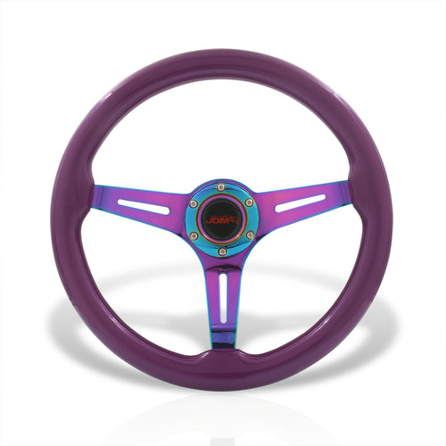 JDM Sport Universal 350mm Wood Grain Style Steel Steering Wheel Neo Chrome Center Purple Wood
