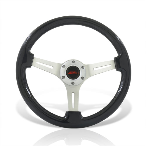 JDM Sport Universal 350mm Wood Grain Style Steel Steering Wheel Neo Chrome Center Metallic Black Wood