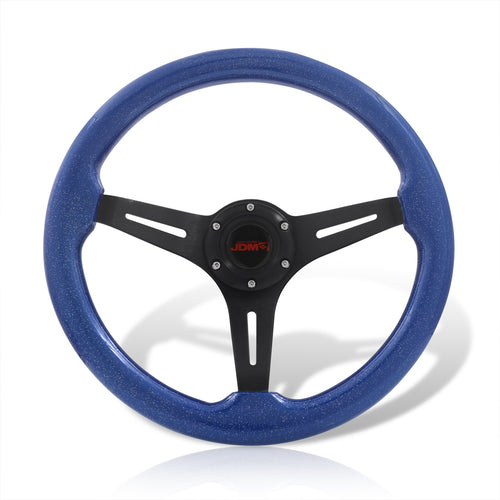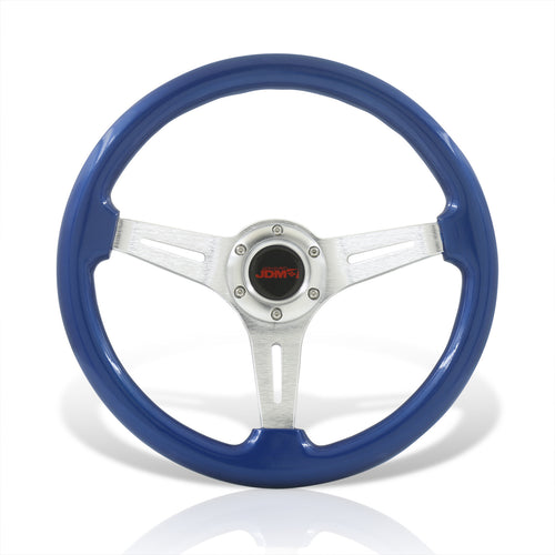 JDM Sport Universal 350mm Wood Grain Style Aluminum Steering Wheel Black Center Metallic Blue Wood