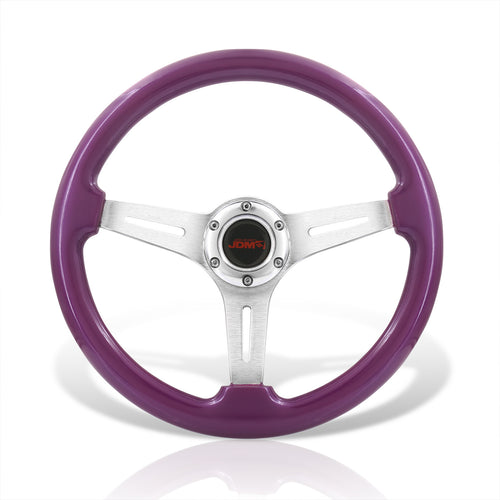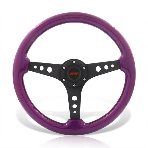 JDM Sport Universal 350mm Wood Grain Style Aluminum Steering Wheel Black Center Purple Wood