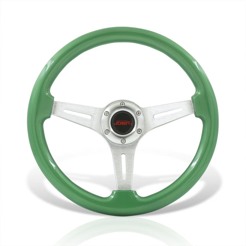JDM Sport Universal 350mm Wood Grain Style Steel Steering Wheel Neo Chrome Center Green Wood