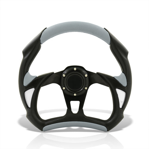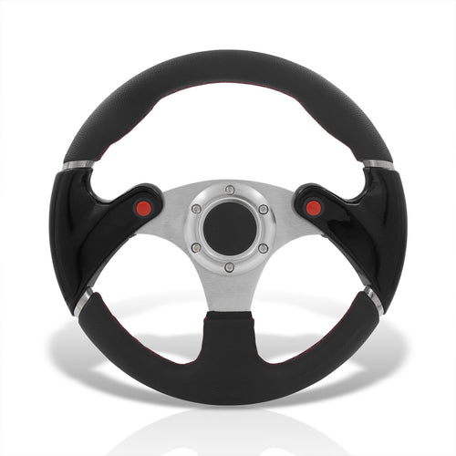 Universal 320mm Dual Button Style Aluminum Steering Wheel Silver Center with Black Handles