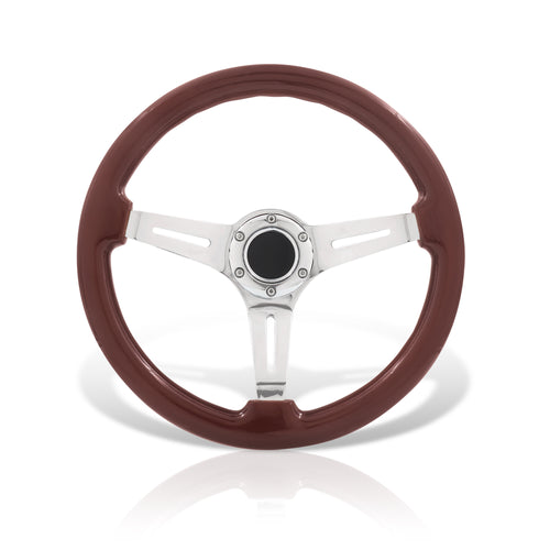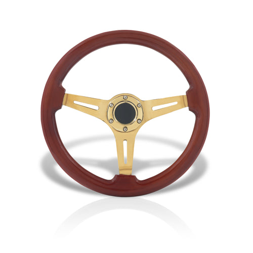 Universal 350mm Heavy Duty Steel Wood Grain Style Steering Wheel Polish Center Metallic Red Wood