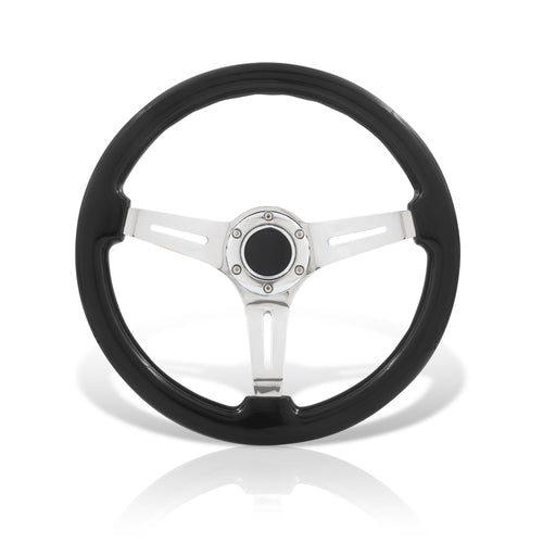 Universal 350mm Heavy Duty Steel Wood Grain Style Steering Wheel Polish Center Gunmetal Metallic Wood