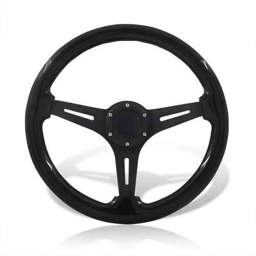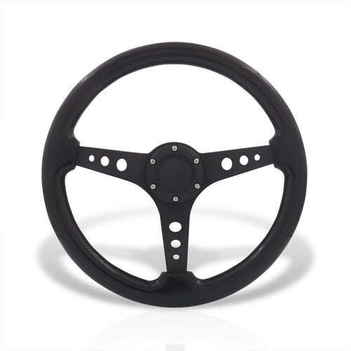 Universal 350mm Wood Grain Style Aluminum Steering Wheel Black Center Metallic Black Wood