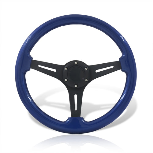 Universal 350mm Wood Grain Style Aluminum Steering Wheel Black Center Metallic Blue Wood