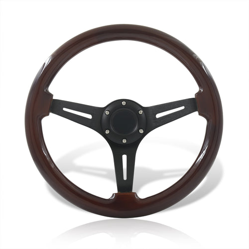 Universal 350mm Wood Grain Style Aluminum Steering Wheel Black Center Dark Wood
