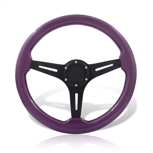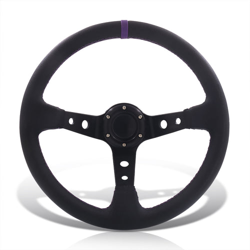 Universal 350mm PVC Leather Deep Dish Style Aluminum Steering Wheel Black Center with Purple Stitching