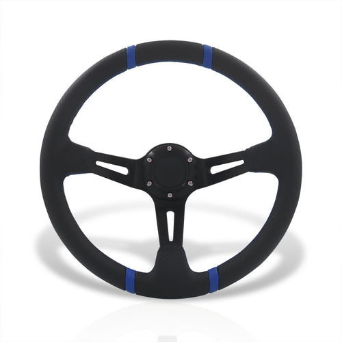 Universal 350mm PVC Leather Deep Dish Style Aluminum Steering Wheel Carbon Fiber Wrapped with Blue Stripes