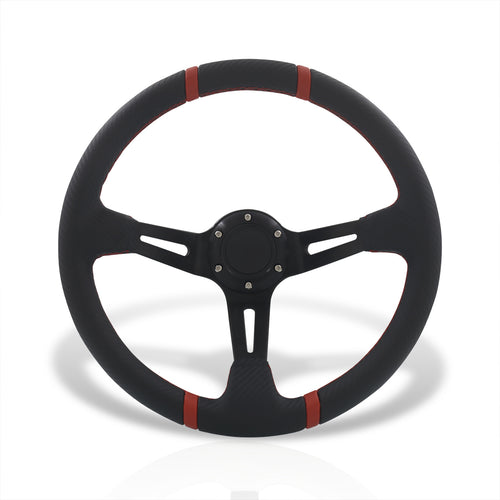 Universal 350mm PVC Leather Deep Dish Style Aluminum Steering Wheel Carbon Fiber Wrapped with Red Stripes